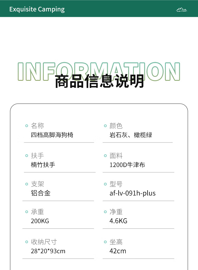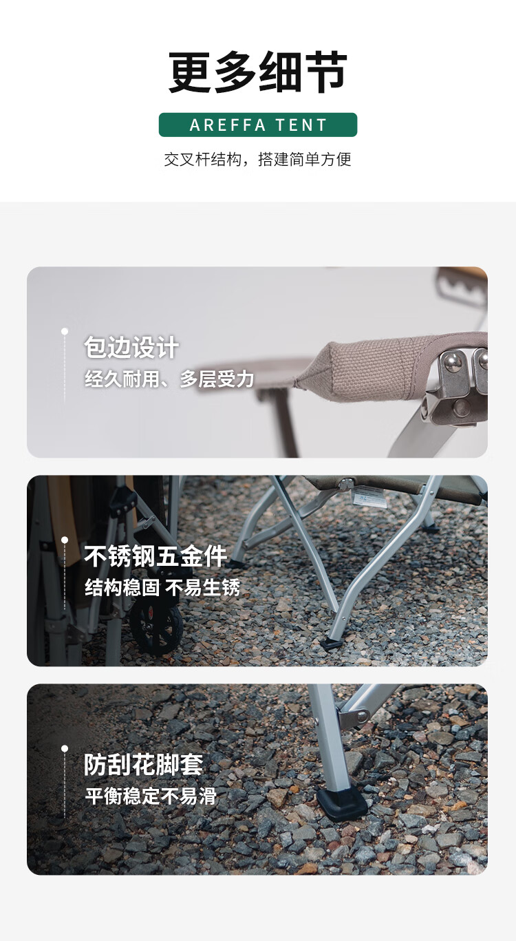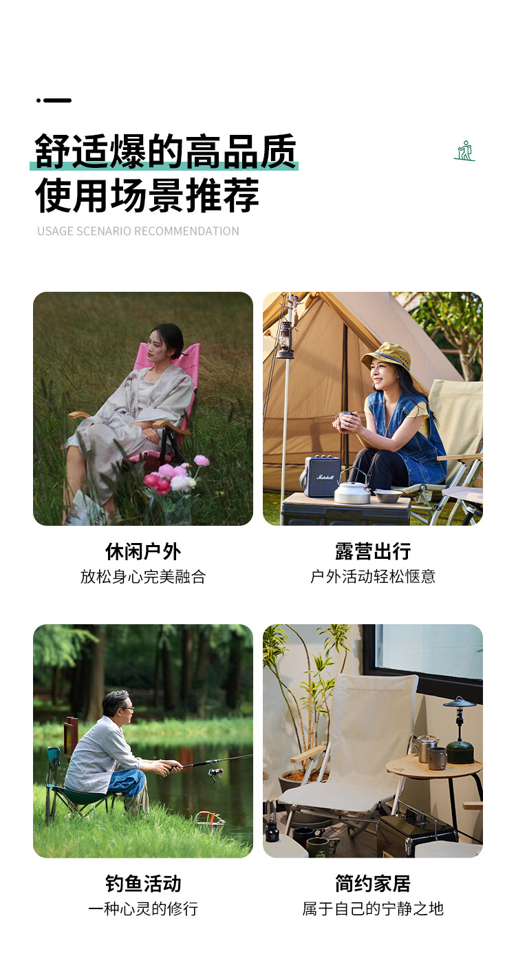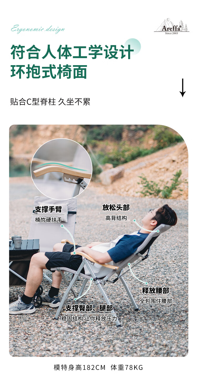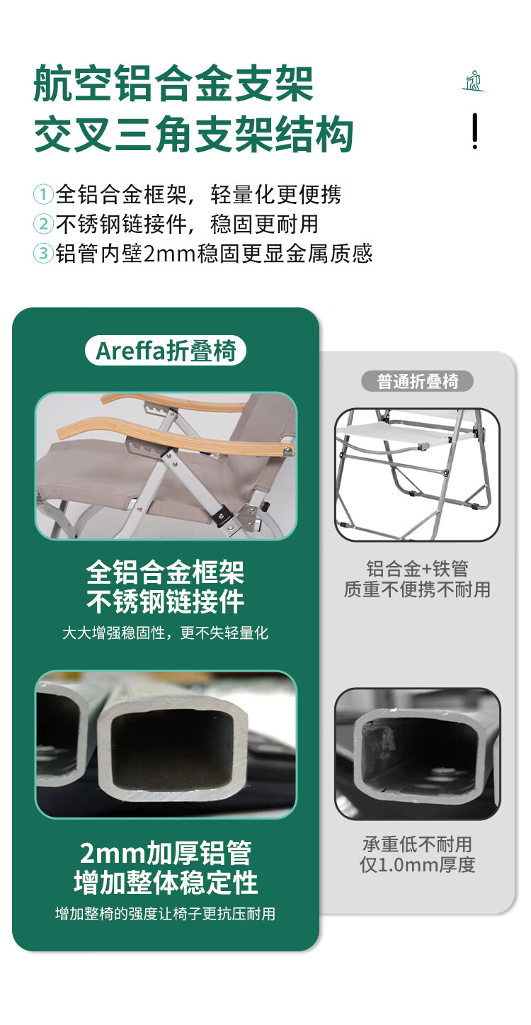 AREFFA铝合金户外折叠桌椅公园高背海狗椅露营沙滩椅子野餐便携轻便091 【军绿色】高背海狗椅 太空灰管