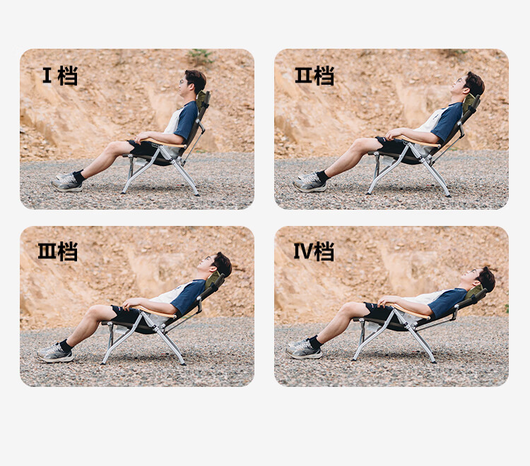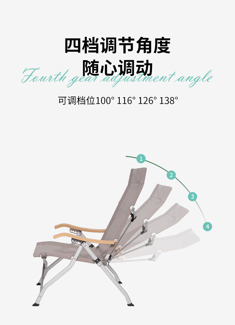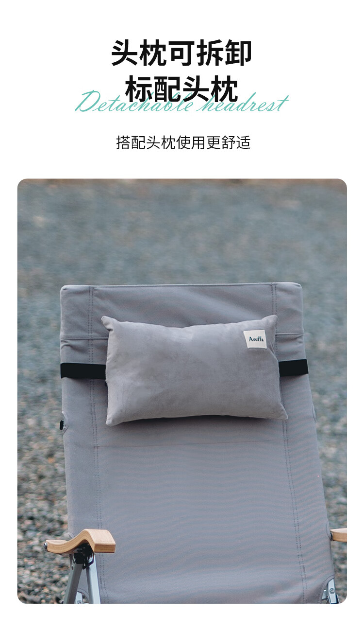 AREFFA户外折叠椅子便携式铝合金露营午休椅野餐躺椅矮脚调档高背海狗椅 【灰色】四档矮脚海狗椅【送头枕+终身质保】