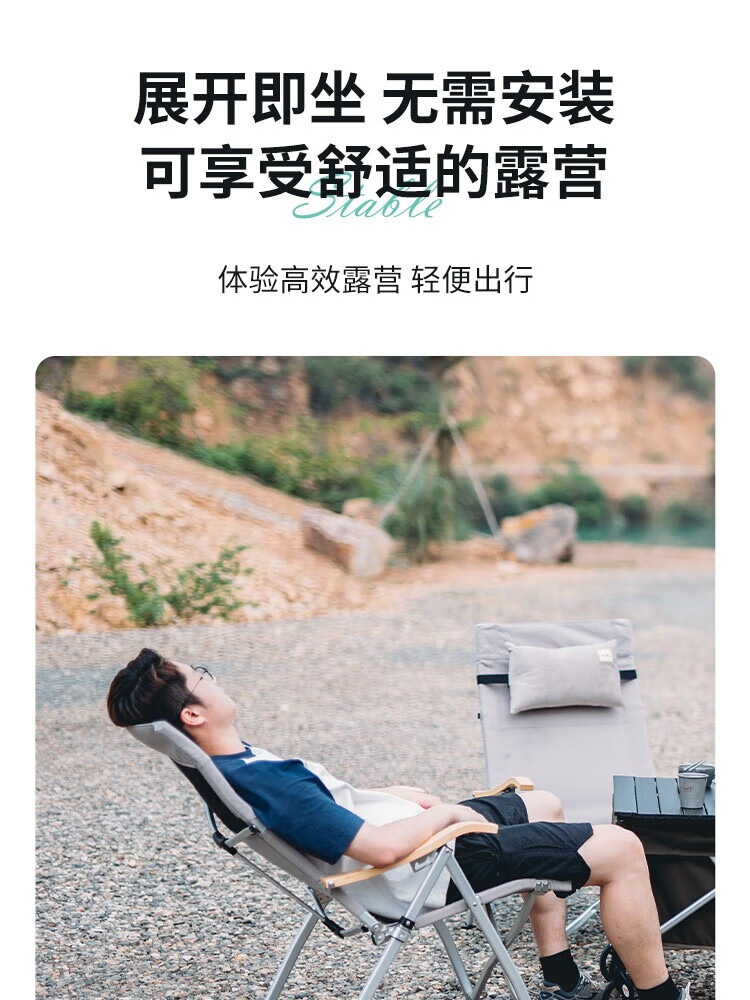 AREFFA海狗椅户外钓鱼野餐轻量化便携可折叠休闲露营桌椅铝合金093凳子 高背海狗椅(岩石灰)