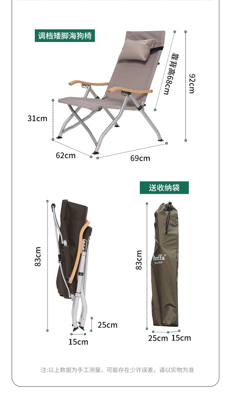 AREFFA自驾游轻量化户外露营便携式野营钓鱼休闲铝合金折叠调档海狗躺椅 调档高脚海狗椅(橄榄绿)