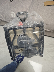 和图片展示倒是蛮一致的,细节上感觉比较一般,前面卡拉手的卡扣不是很好用,要很用力才能卡上去,这个设计有待改进。比想象中的空间倒是大很多,感觉可以拖着小朋友在上面跑了,轮子挺大的,承重能力应该也还行吧。