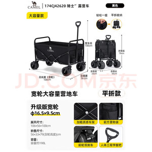 CAMEL露营小拉车营地车买菜溜娃遛狗折叠车家用推车取快递 J42620黑色