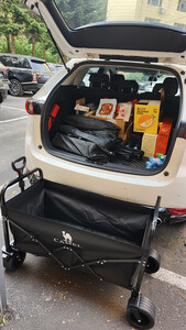 车子很大,非常能装,放后备箱不用的时候可以折叠。