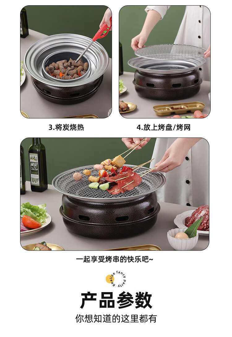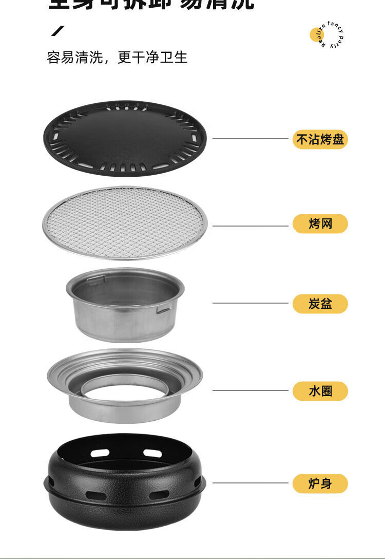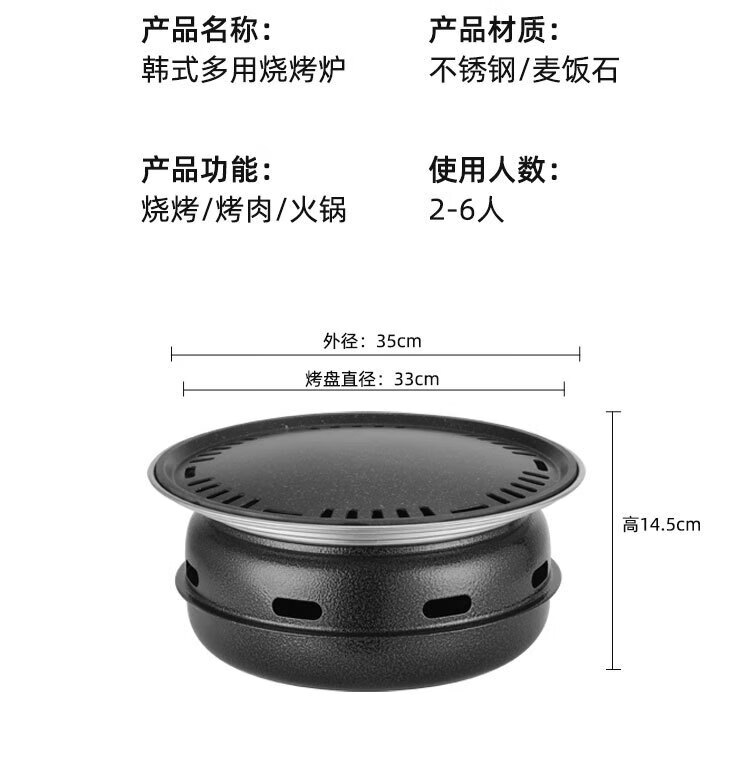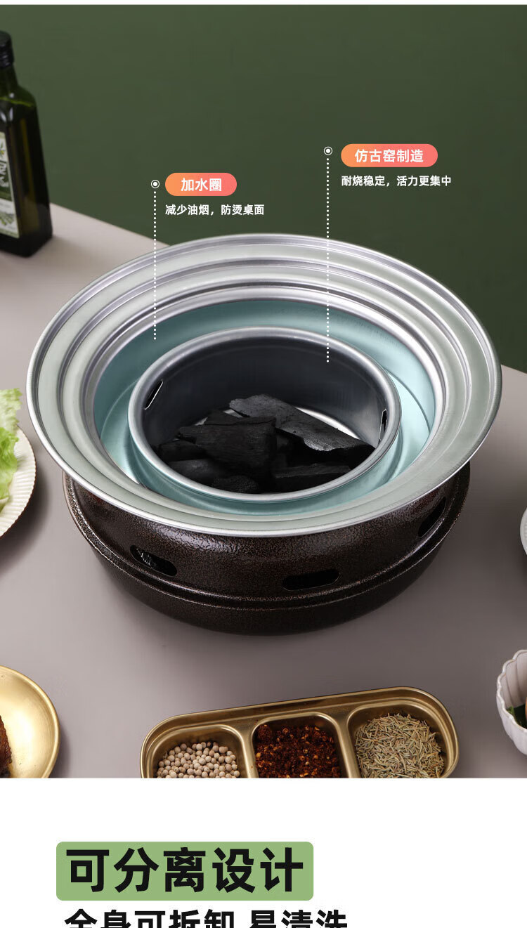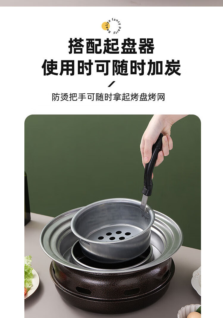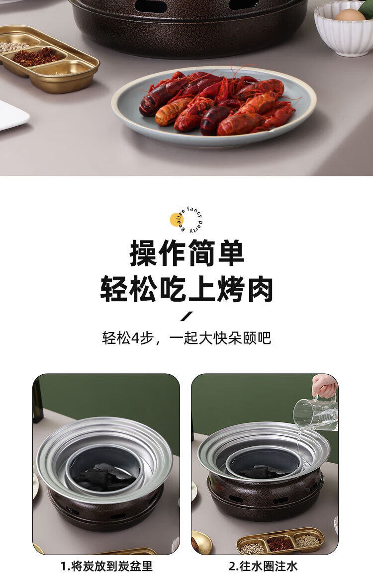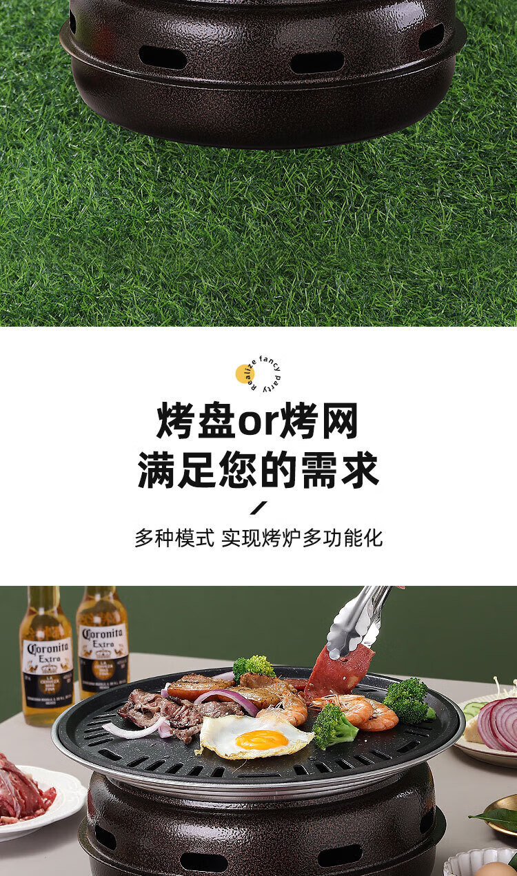 北极狼围炉煮茶的炉子全套便携烤肉碳烤炉家用户外韩式木炭无烟烧烤炉 炉身+小号烤网[30cm]
