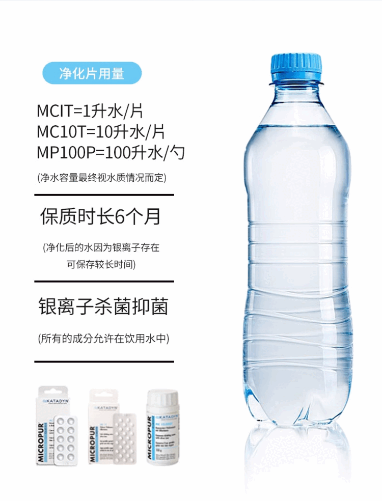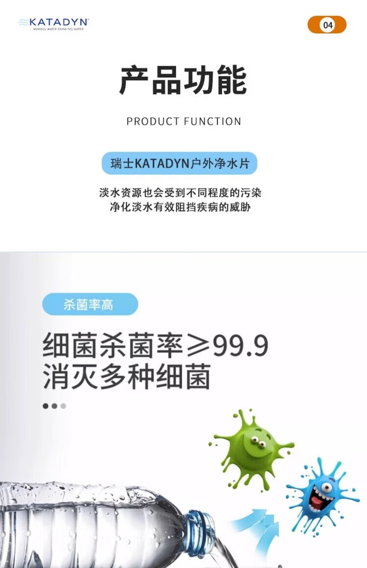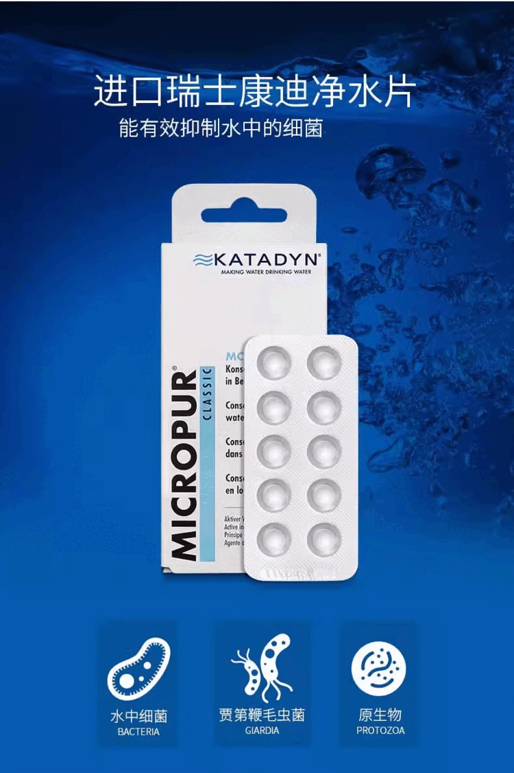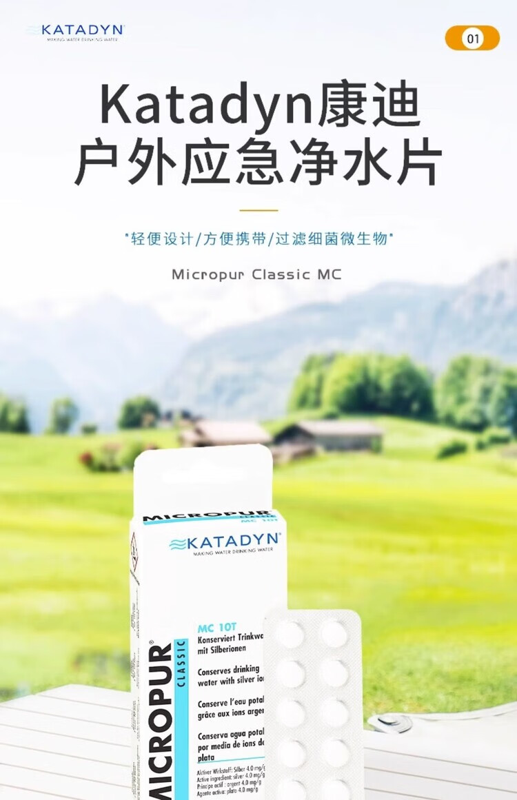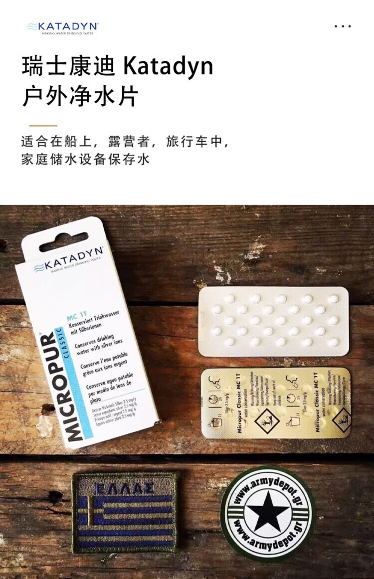 KATADYN瑞士康迪应急物资净水片家用饮用水消毒片户外探险野露营出游必备