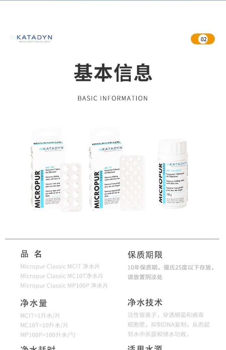 KATADYN瑞士康迪银氯净水片 MF1T应急饮水徒步 露营自驾户外旅行 1板MC10T 10粒