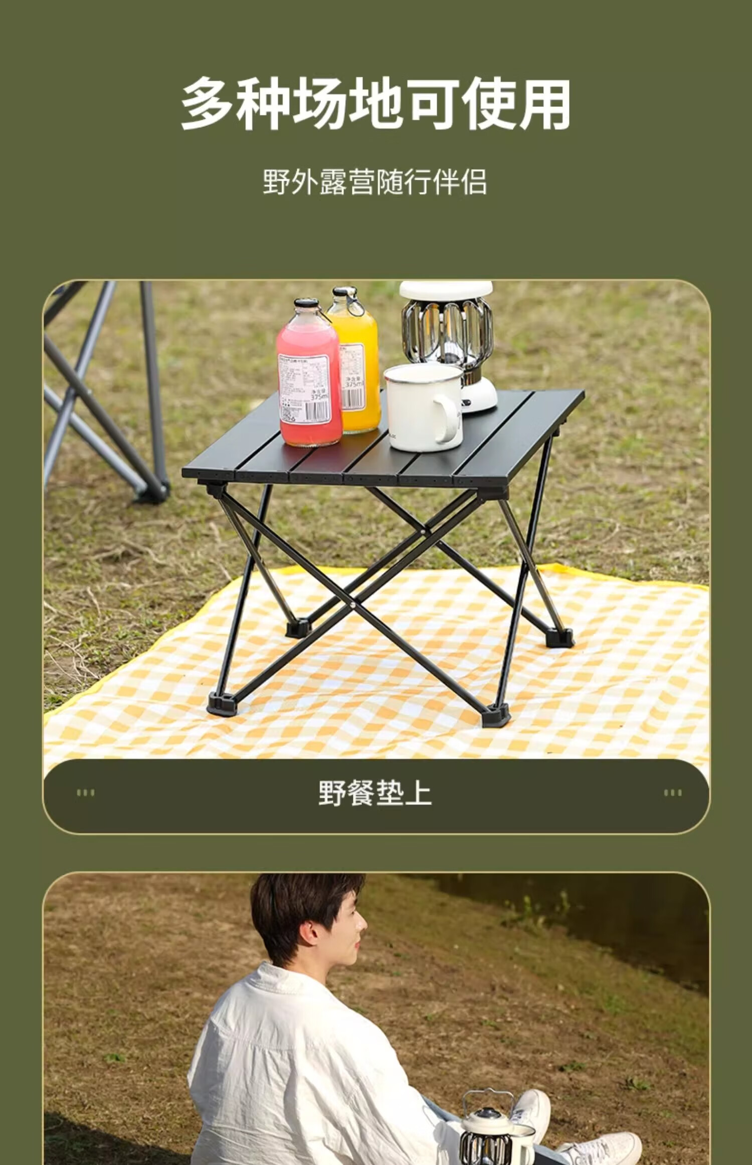 原始人户外折叠桌椅套装露营桌椅野餐椅子便携式野营装备蛋卷桌 中号磨砂黑-加厚款【2-4人适用】