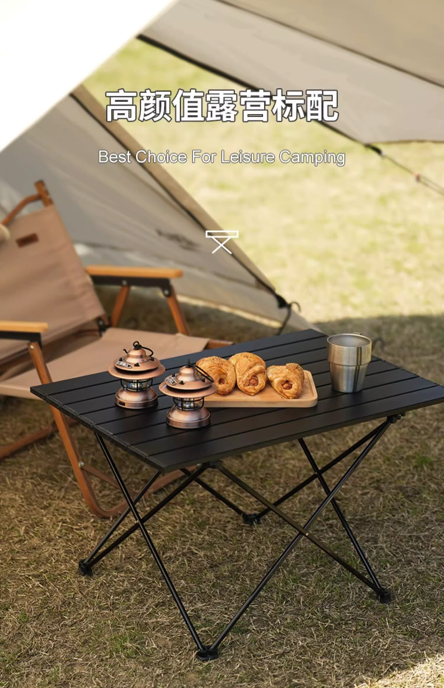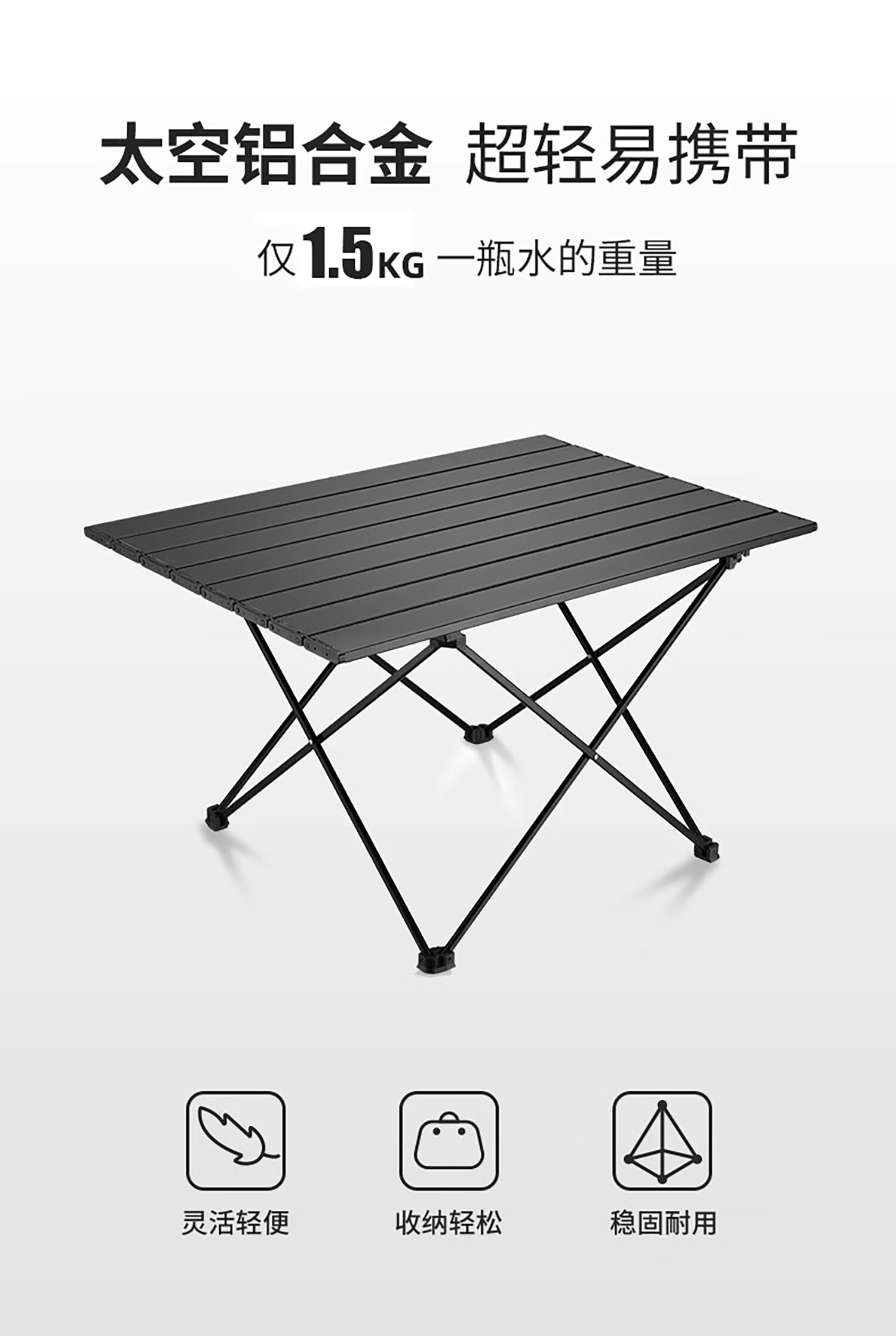 原始人(The Primitive) 户外折叠桌铝合金野餐桌椅便携式露营蛋卷桌子用品装备套装 升级款全黑-中号(配收纳袋)