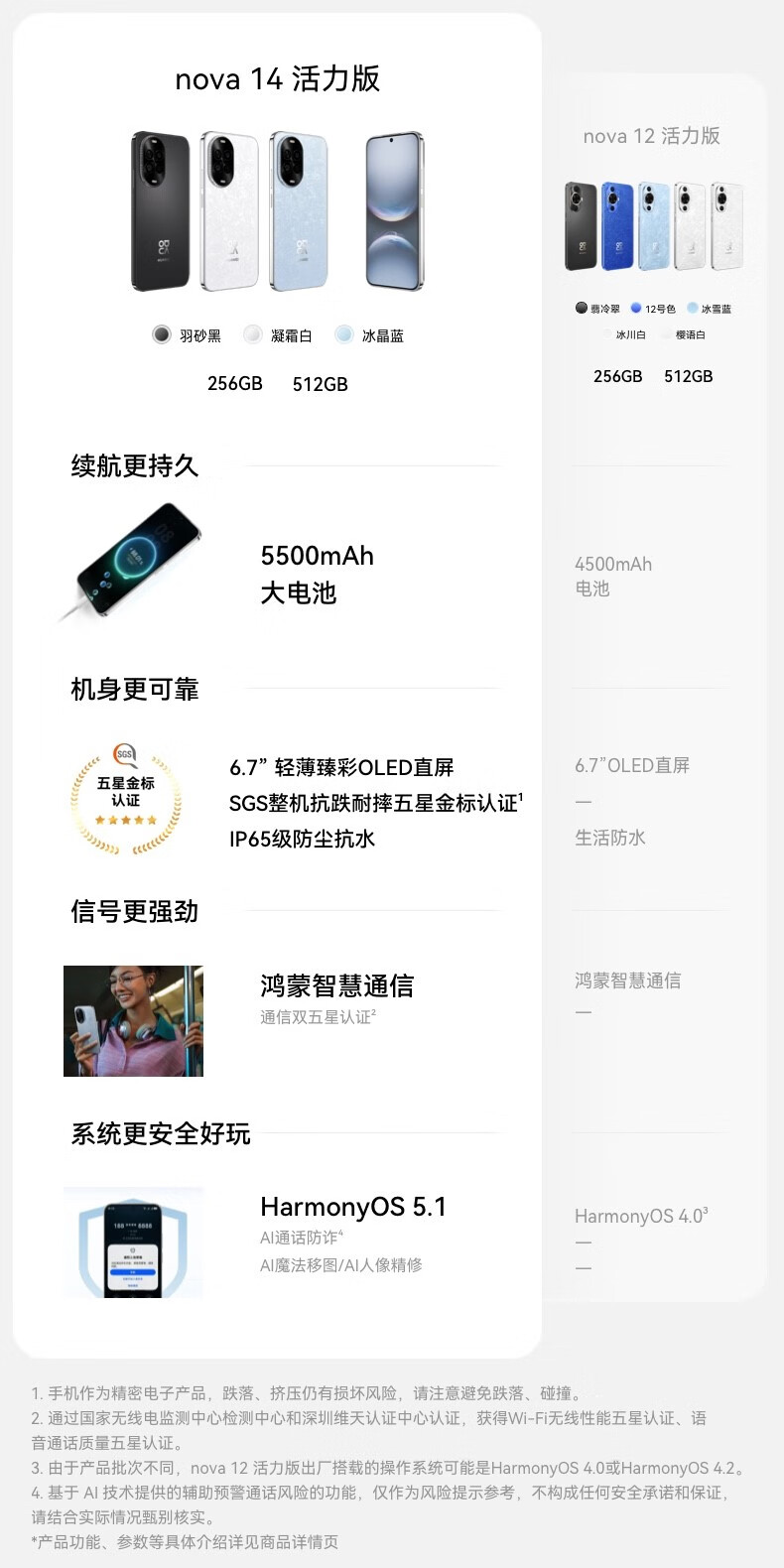 华为新款上市 nova 14 活力版 通NFC鸿蒙智能手机平面屏华为手机官方旗舰学生游戏 凝霜白 12GB+256GB