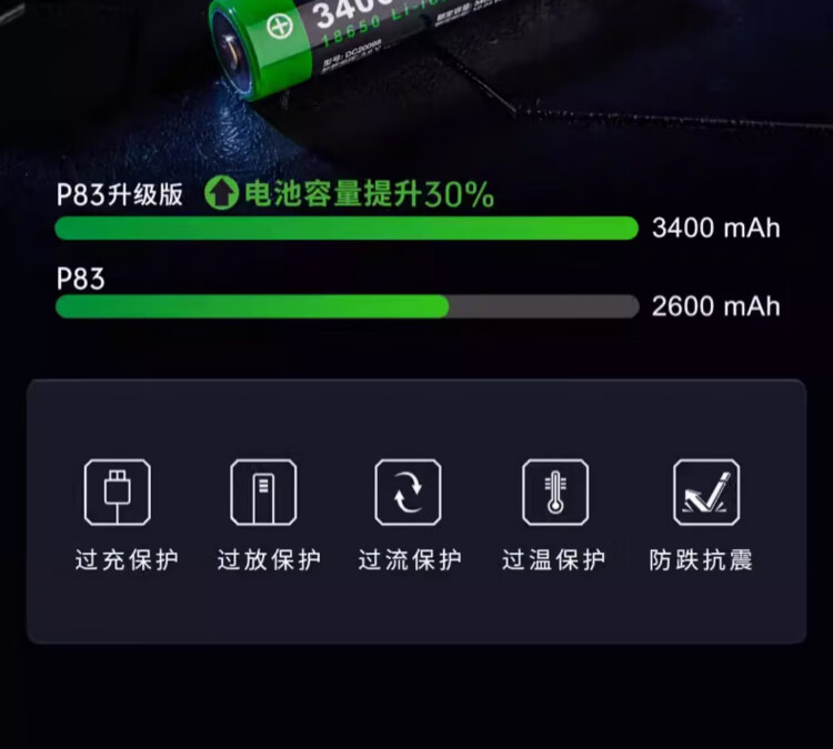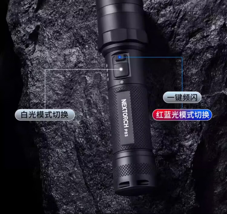 纳丽德P83强光手电筒户外战术红蓝闪可充电超亮便携小型巡逻高亮手电筒 P83标配(含一节电池)