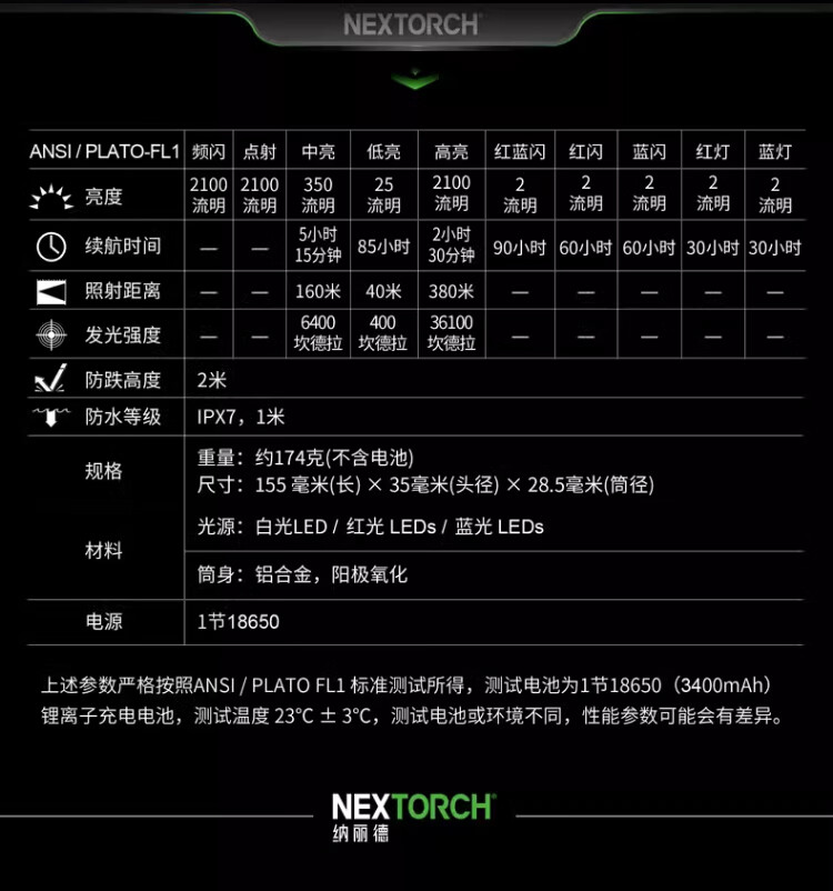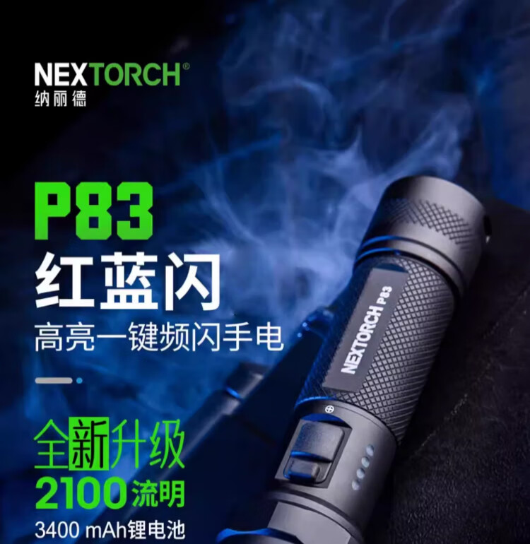 纳丽德(NEXTORCH)P84手电筒2025新款强光远射超亮3700流明红蓝闪户外战术搜索救援 P84标配+1节21700电池