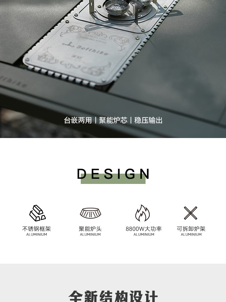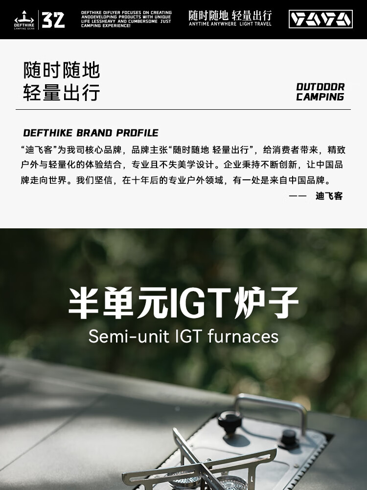 迪飞客/Defthike户外露营野餐IGT桌半单元配件台嵌两用大功率猛火燃气炉 黑色