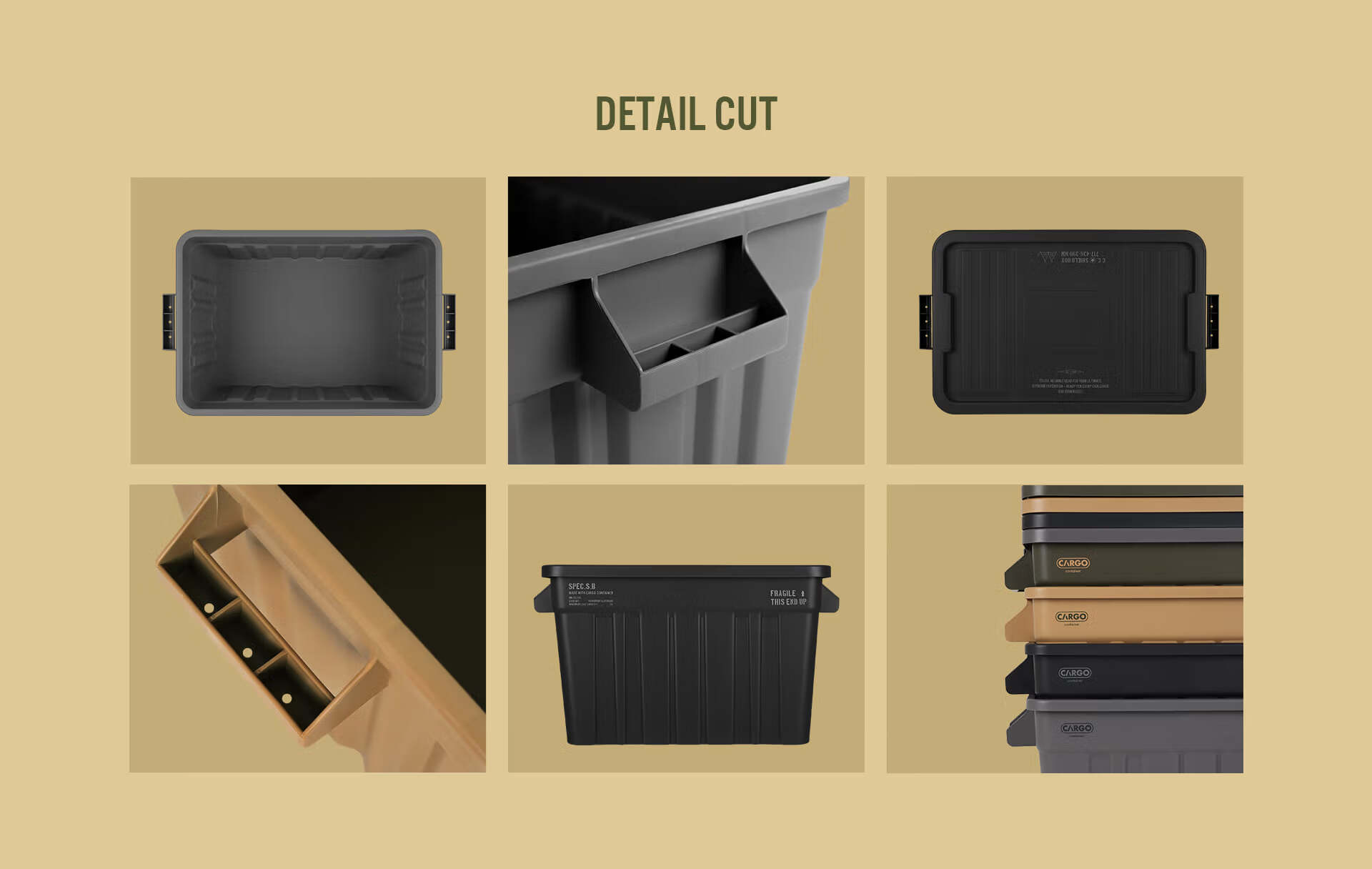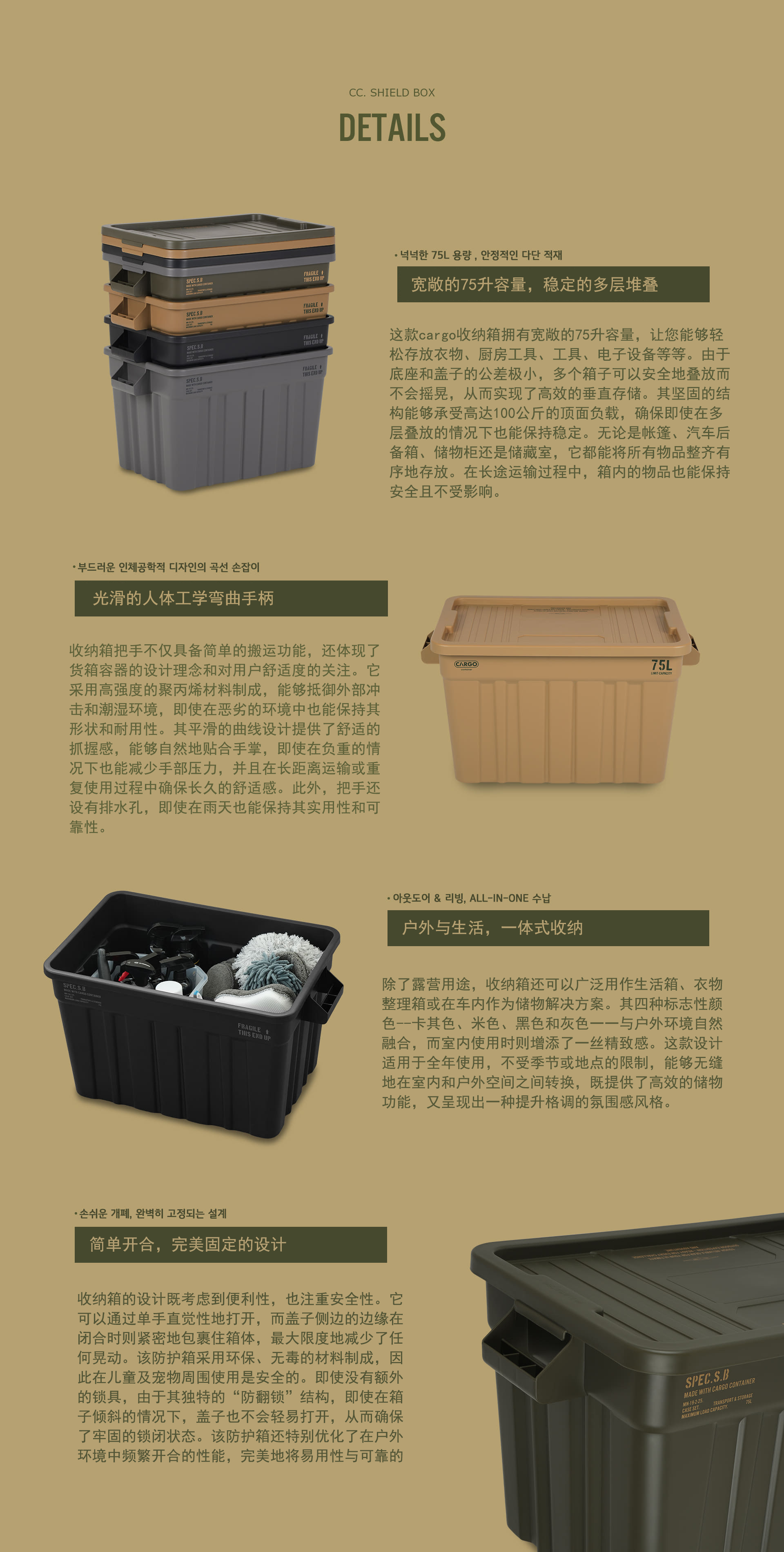 CARGO CONTAINER韩国CARGO带盖75L收纳箱大容量搬运箱车载收纳储物箱户外家具收纳 灰色