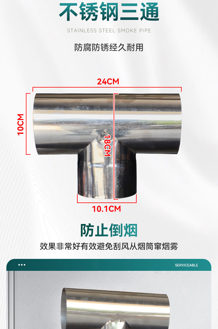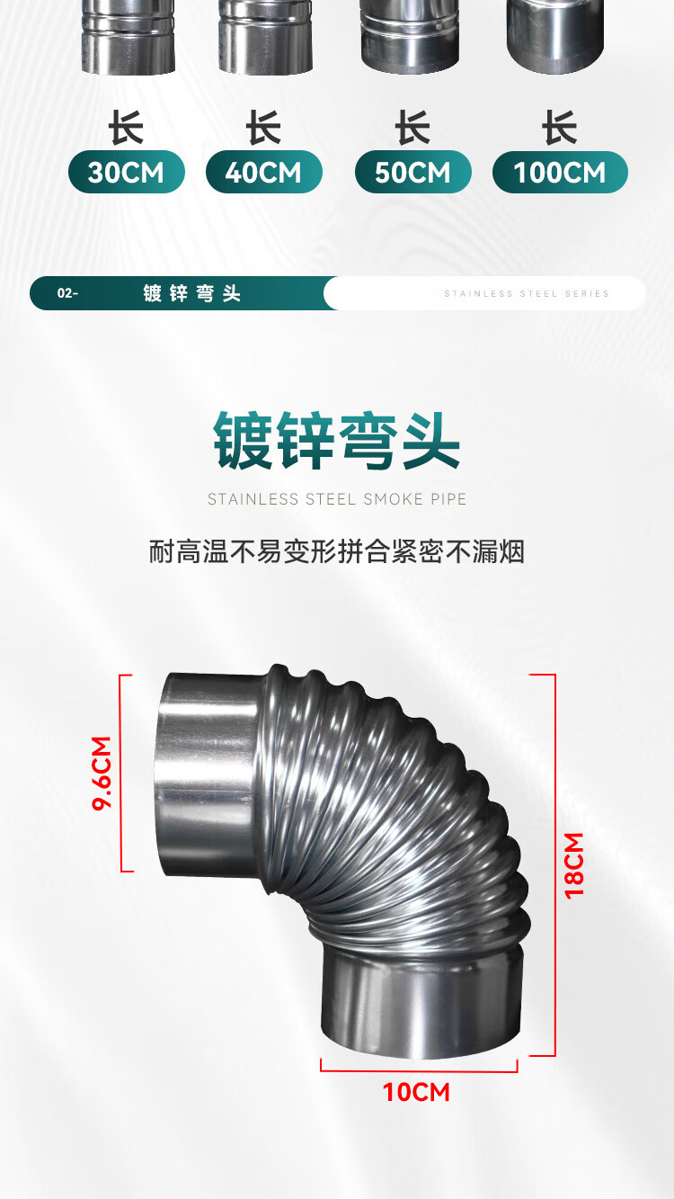 柴火灶炉不锈钢烟管10cm烟筒配件加厚镀锌铁皮不锈钢烟囱三通弯头 直径10厘米50cm【特厚约1斤】
