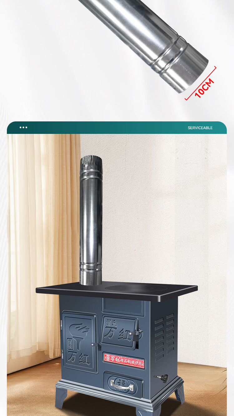 能师傅烤火炉配件不锈钢烟管直接头弯头防烫网家用柴火灶取暖炉烟筒 1米不锈钢烟管 和炉子一起发