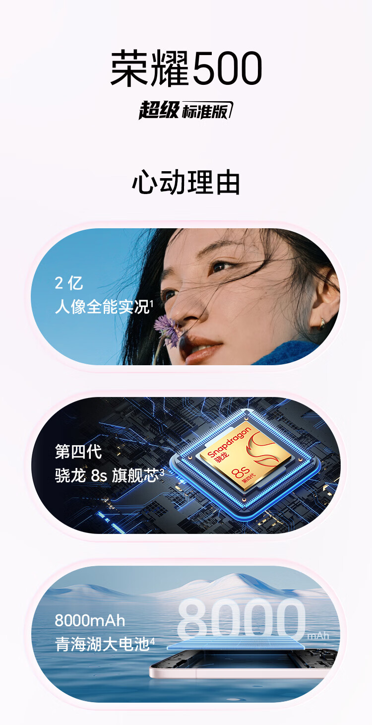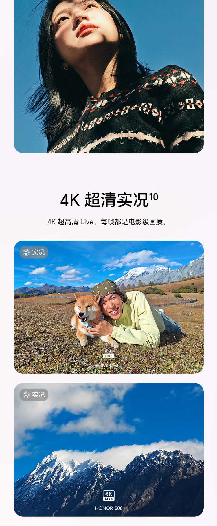 荣耀(HONOR)500 【肖战同款】新品5G手机 超级标配版 2亿人像全能实况 月光银 12GB+256GB【2年碎屏险】 官方标配