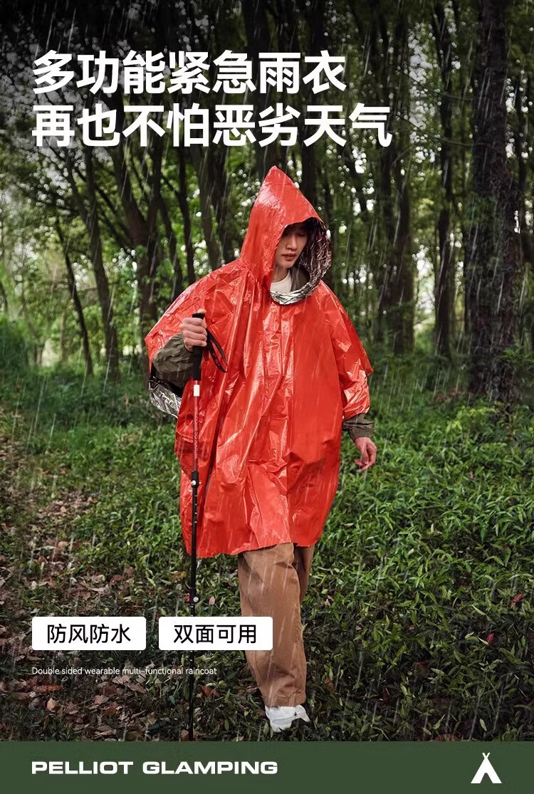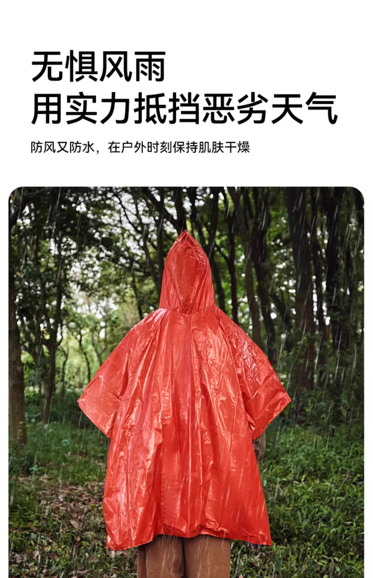 户外应急保温毯子防寒睡袋野外帐篷保暖用品装备大全急救包求生存 户外救生毯-急救雨衣-橙色-1件 均码