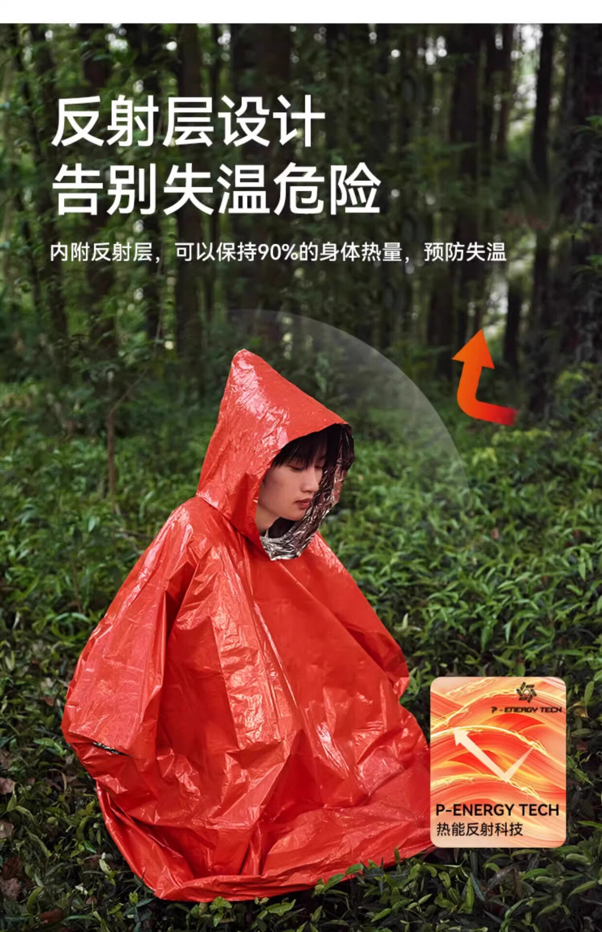 原始人防寒雨衣户外应急保温毯登山反光急救毯铝箔锡纸生存救生毯 L款【铝膜多功能防风保暖雨衣】