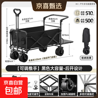 探险者营车儿童可躺户外超大野营拉小拖车野餐折叠手推车遮阳棚 极光黑【加大后开款】+遮阳套餐