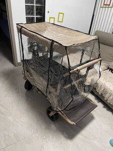 质量很不错的一个露营车,之前买了一个他家的所以又入手了一个带遮阳棚的 天气热很适合带小孩出去露营。轮胎很厚实平时也不挑路况,很满意的一次购物