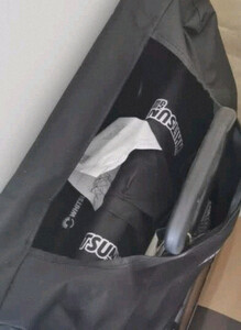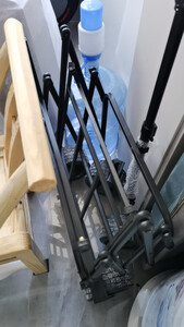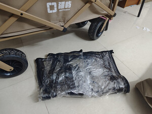 露营推车,整体还算不错,轮子很好用,转向方便很好推,不费劲。只是底盘铁条不是很粗大,不知道耐不耐用。塑料雨棚,塑料味很重,特别的不满意这个气味。。。