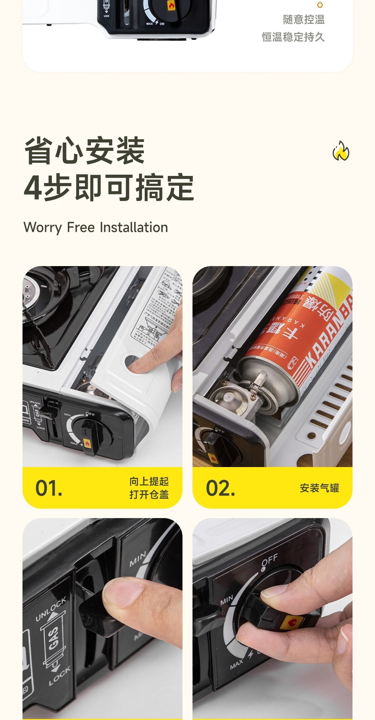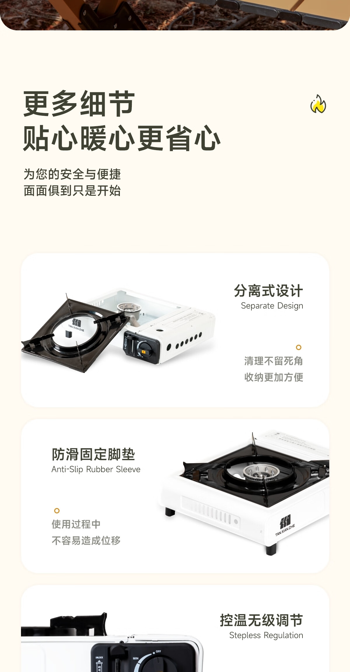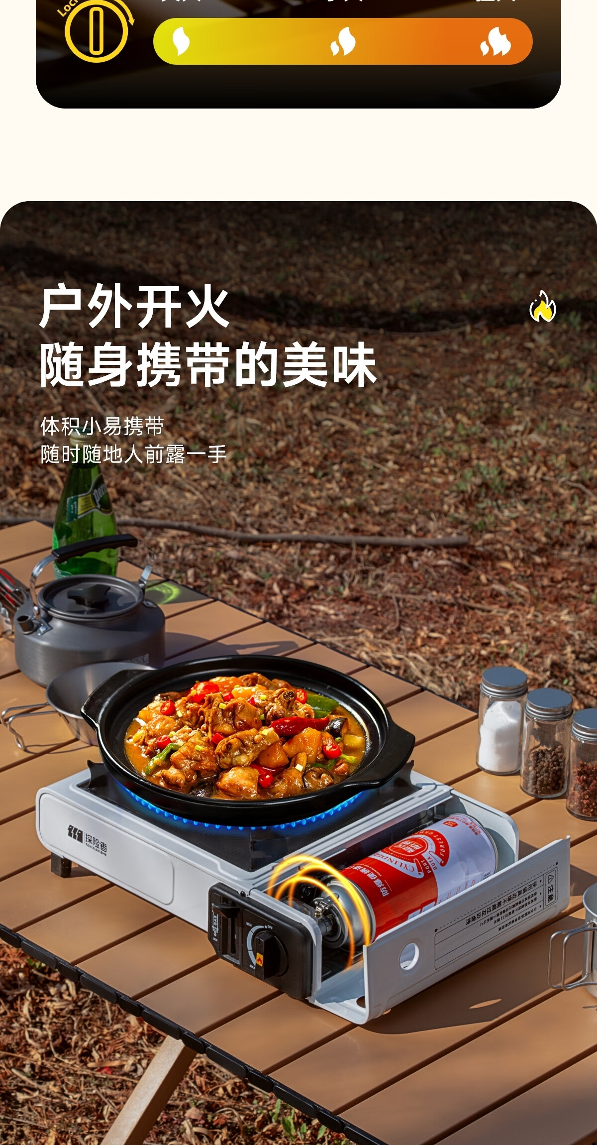 我对这款卡式炉的便携性赞不绝口!轻巧的设计让我能轻松将它带到任何地方。湖边、山顶、公园,无论哪里都能搭建起温馨小厨房。它不仅满足烹饪需求,更让我在户外感受到家的温暖,真是露营的好伙伴。