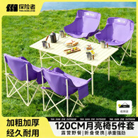 探险者(TAN XIAN ZHE)户外折叠椅露营桌椅月亮椅钓鱼考研椅沙滩椅便携椅子野餐全套装备 【一桌两椅】95碳钢折叠桌+铃兰紫*2