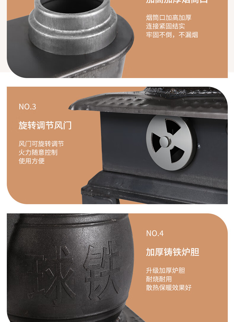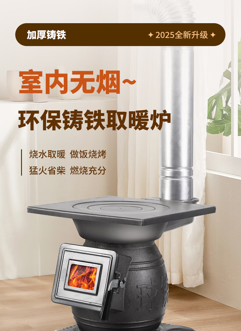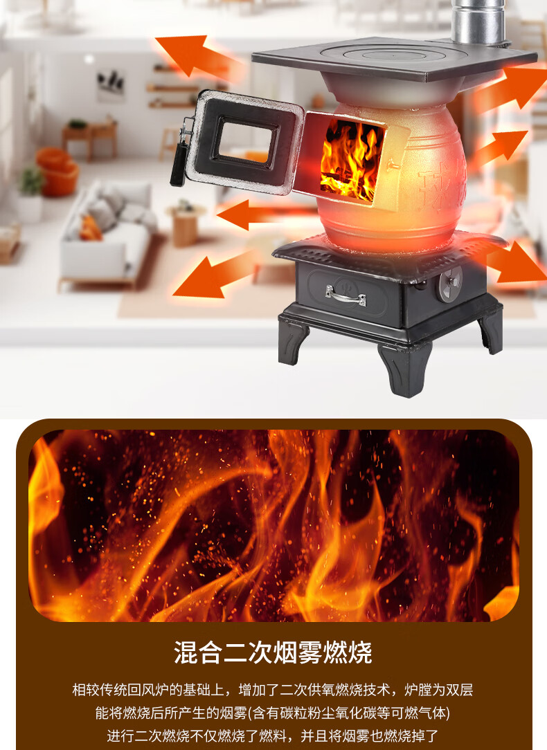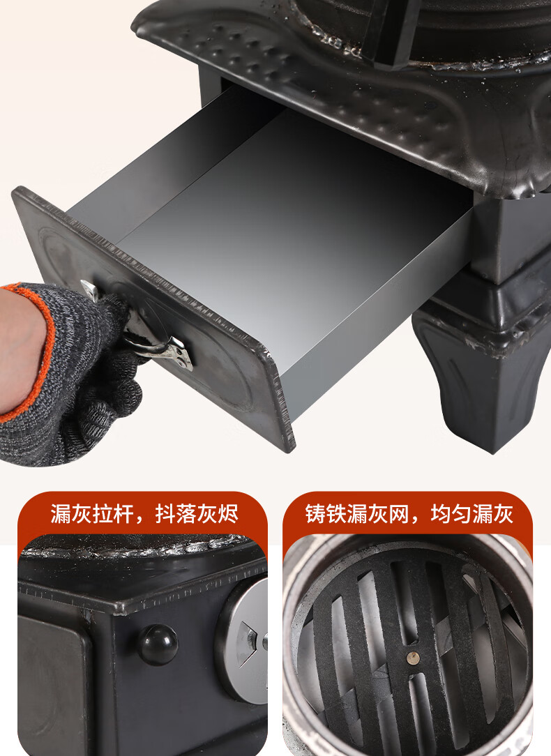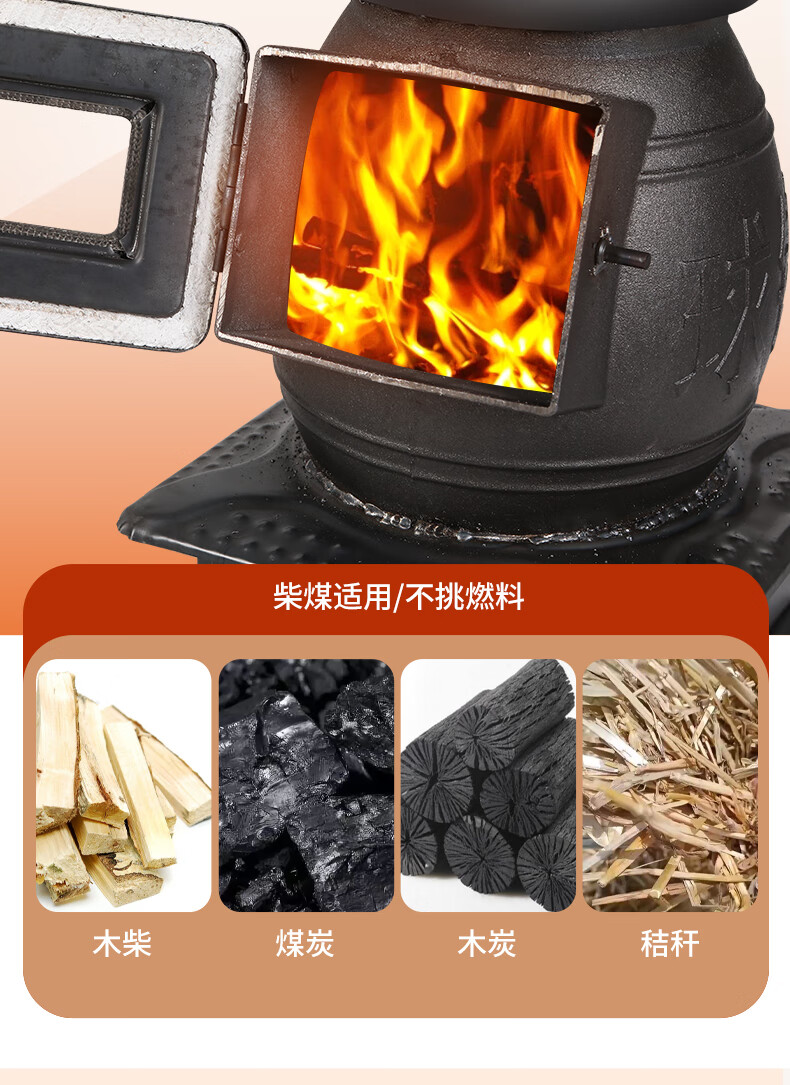 GDHOTITI农村取暖炉家用室内烧煤炭炉柴煤两用采暖炉新型无烟烤火柴火炉子 【中号】铸铁取暖炉+大礼包