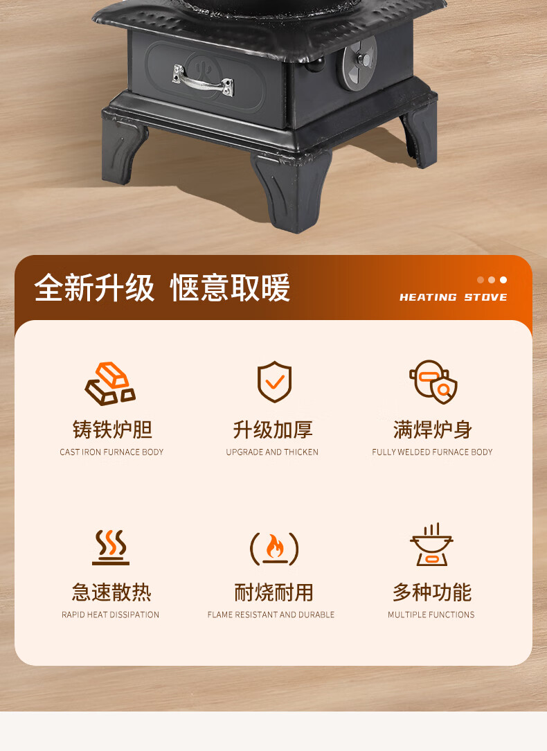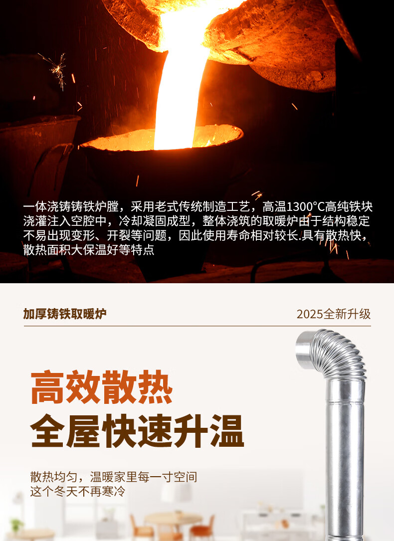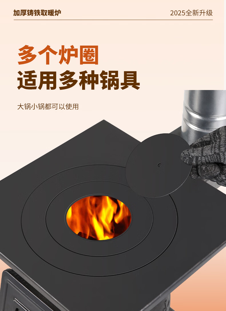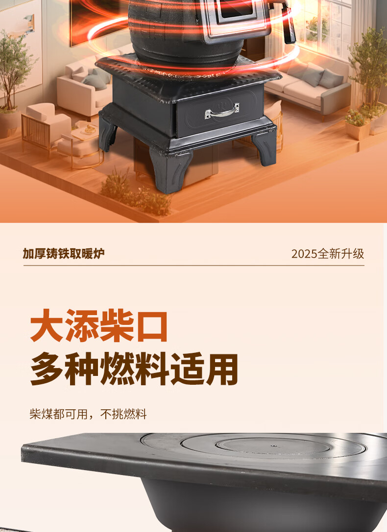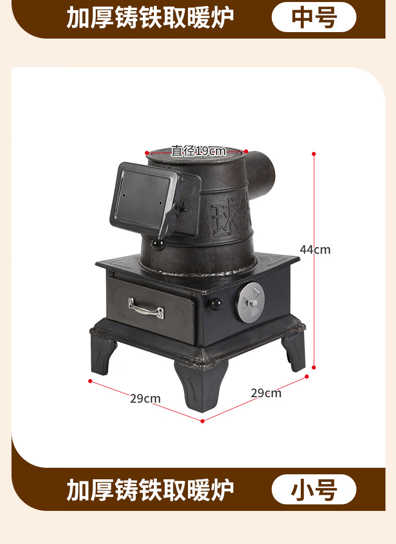 GDHOTITI农村取暖炉家用室内烧煤炭炉柴煤两用采暖炉新型无烟烤火柴火炉子 【中号】铸铁取暖炉+大礼包