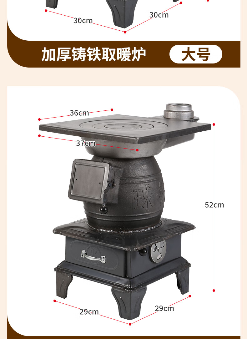 新款加厚球墨铸铁取暖炉家用农村柴煤炉子两用室内煤炉炮弹煤炭 大号