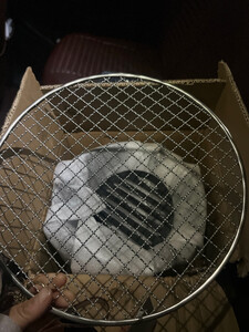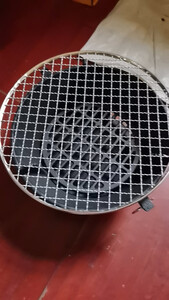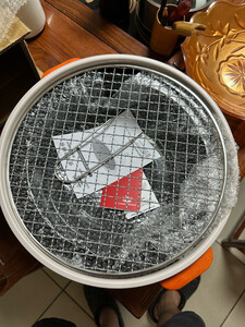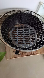 烤过一次了,当天用水冲洗了,看上去哈哈哈,年代感十足,但是东西货真价实,是铸铁的,烤小串够够的,儿童少年用也比较放心,系数保证高,木板一般,后面可以当炭用掉