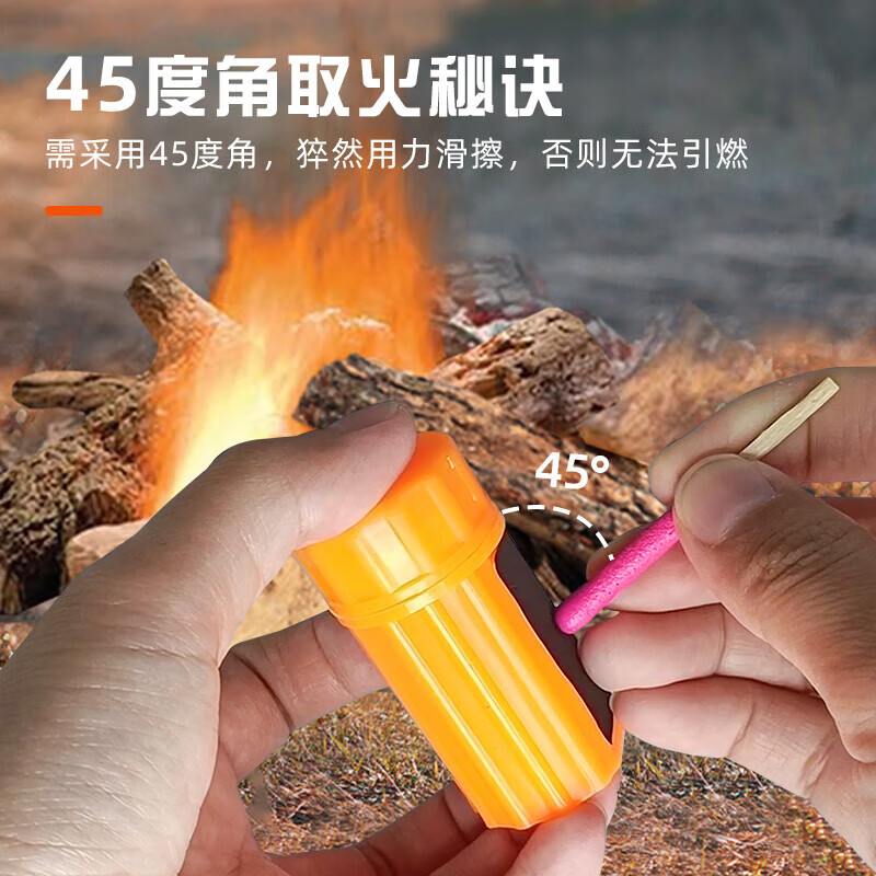 郦狼户外防风火柴防潮取火点火应急装备露营阻燃棒野外助燃求生装备 一桶20支装