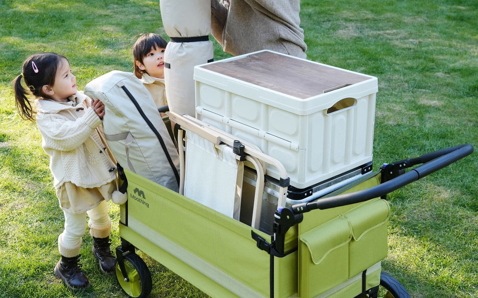 牧行露营车带桌板户外聚拢型折叠手推车儿童可躺野餐拉车S12 610L 绿色MAX+加长桌板+2舒适椅
