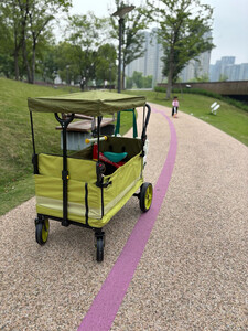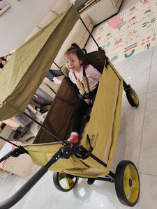 轮子超大,可推可拉真的太省力了,而且很稳。 轮子灵活 方便折叠 可以放到后备箱 遛弯神器,空间也足够大,侧面打开坐着刚刚好。遮阳棚真是刚需,夏天再也不怕晒了