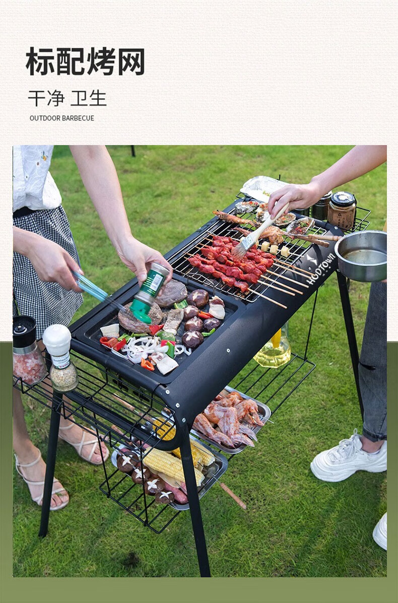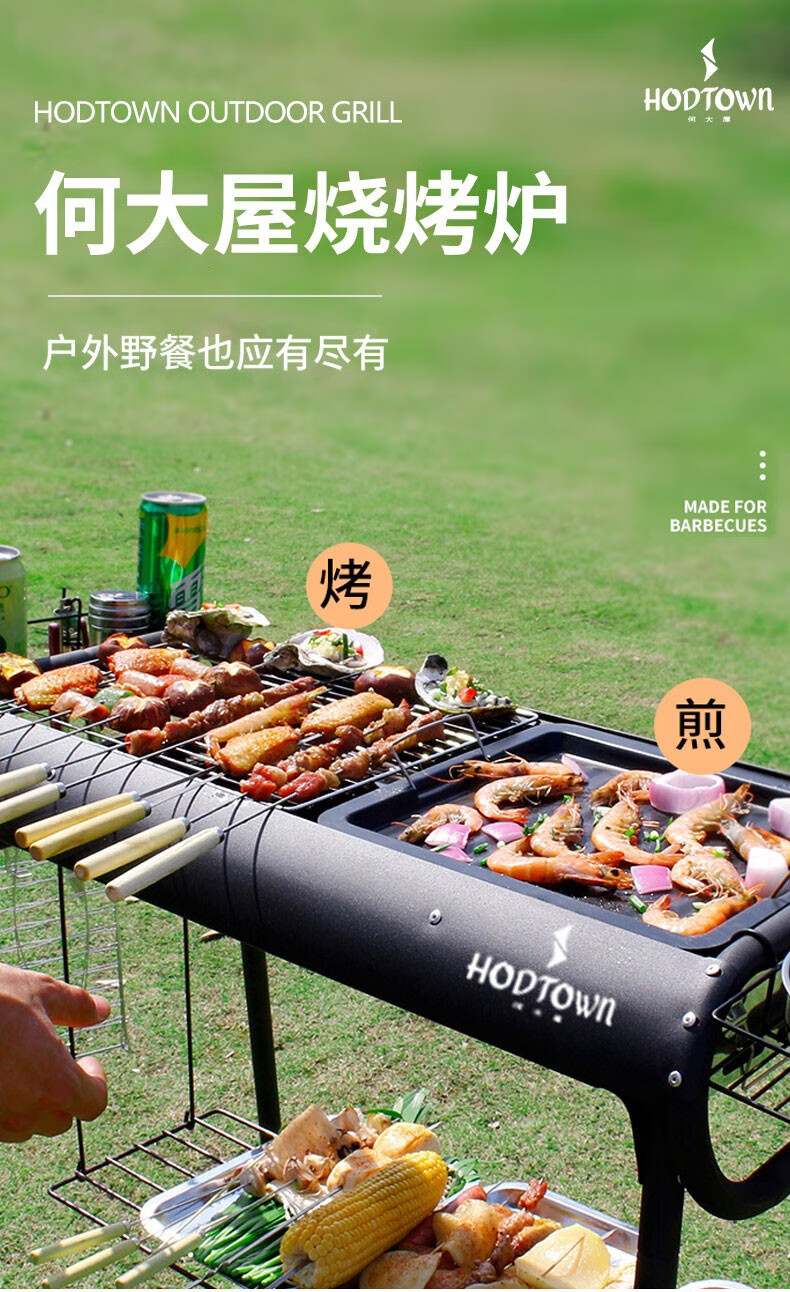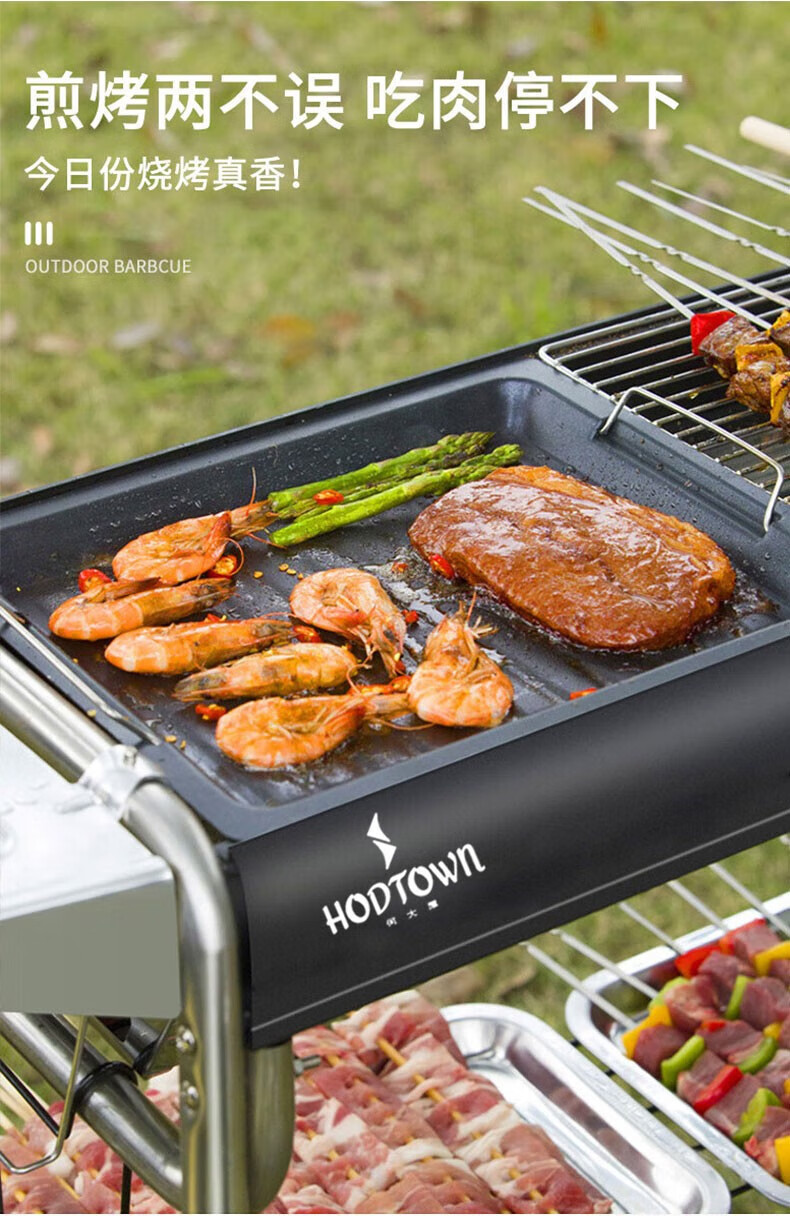 何大屋(Hodtown)烧烤炉户外BBQ烧烤架木炭烧烤碳烤炉家用便捷烧烤炉子烤网+烤盘 一体式烧烤炉