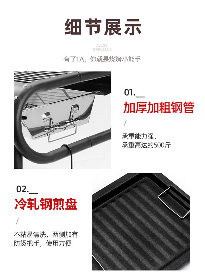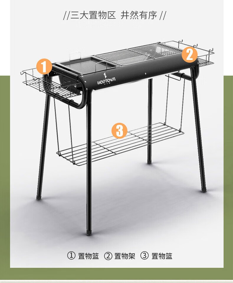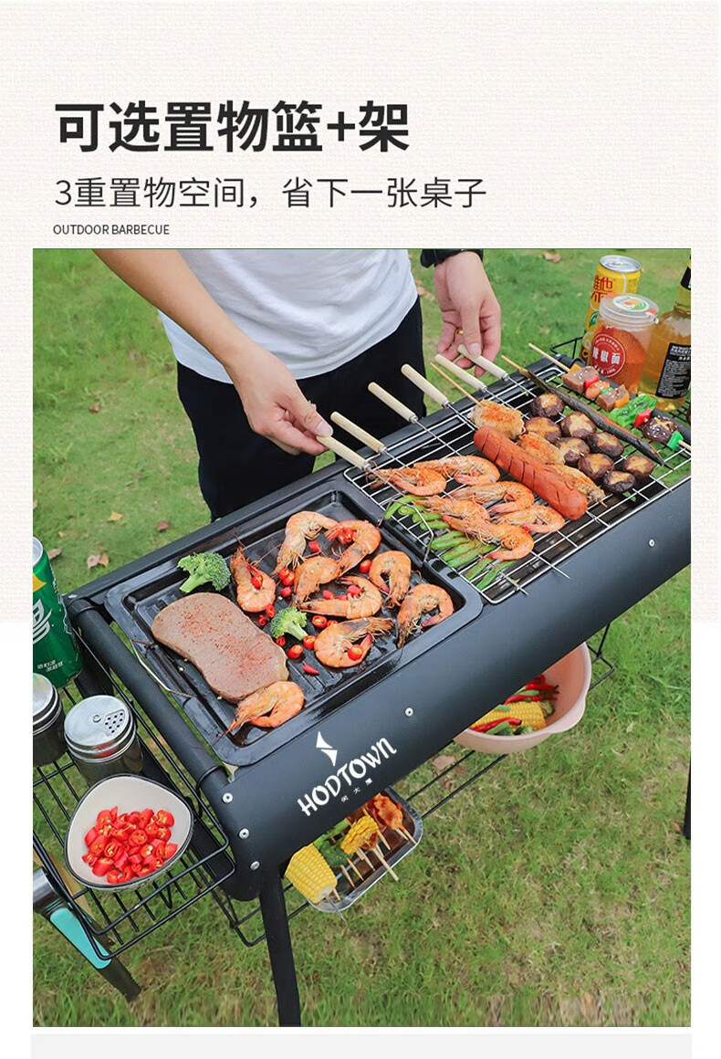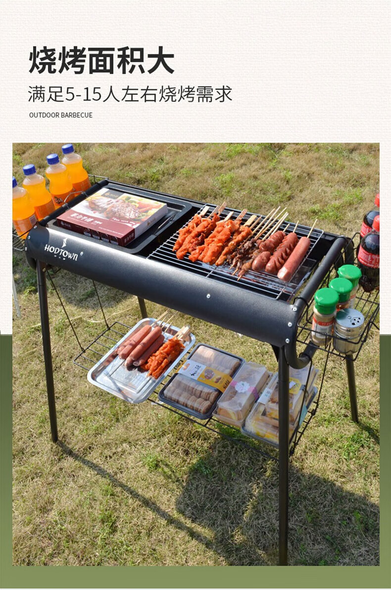 何大屋(Hodtown)烧烤炉户外BBQ烧烤架木炭烧烤碳烤炉家用便捷烧烤炉子烤网+烤盘 一体式烧烤炉
