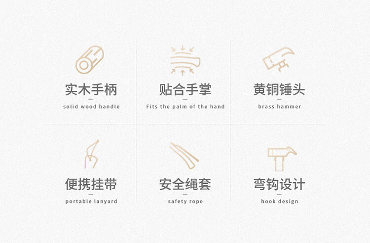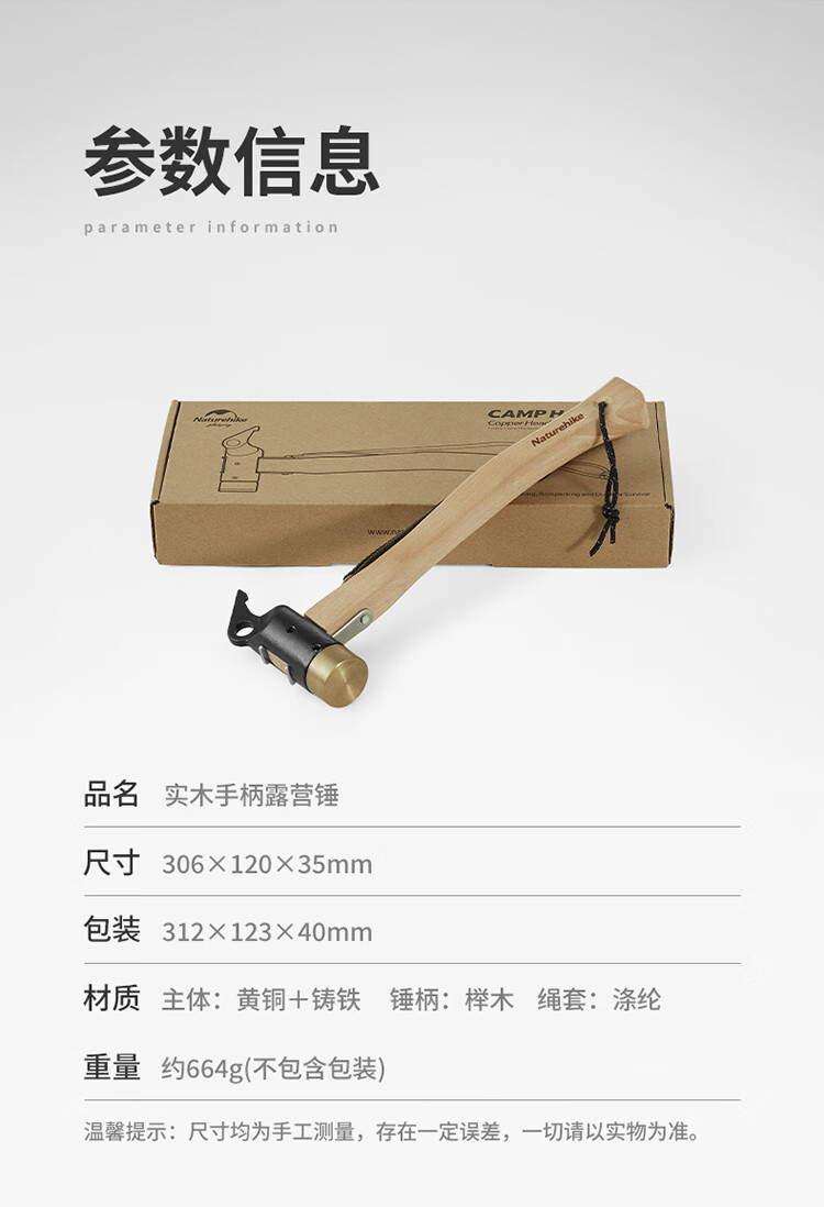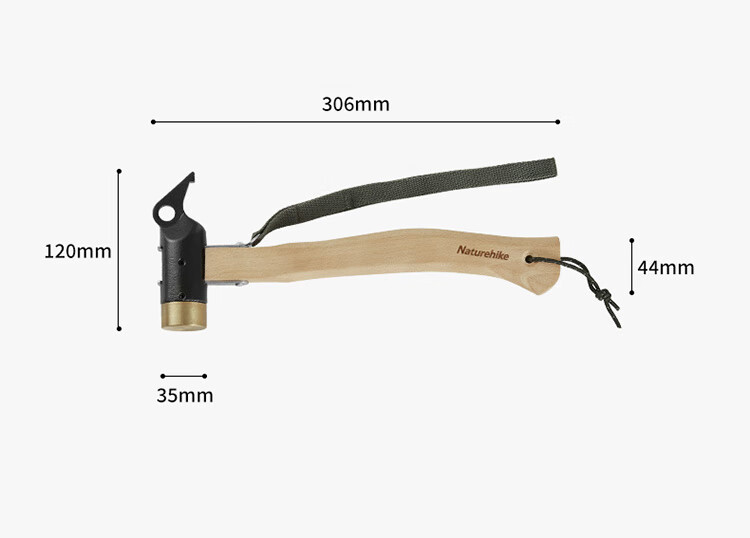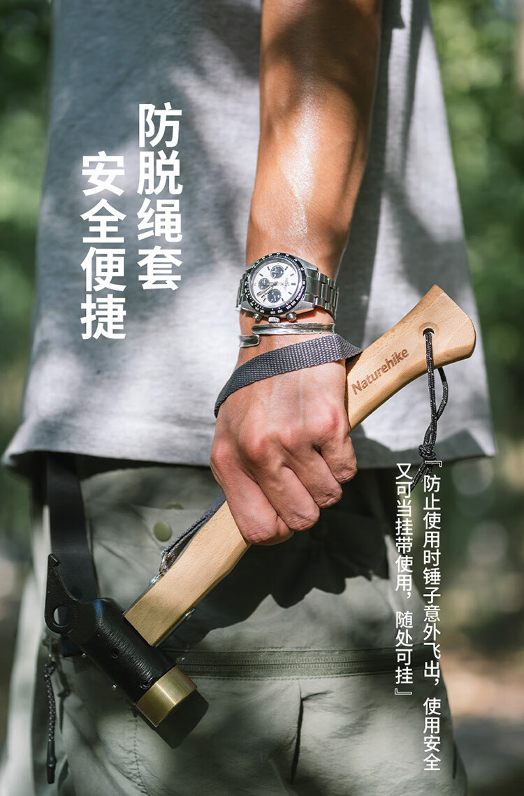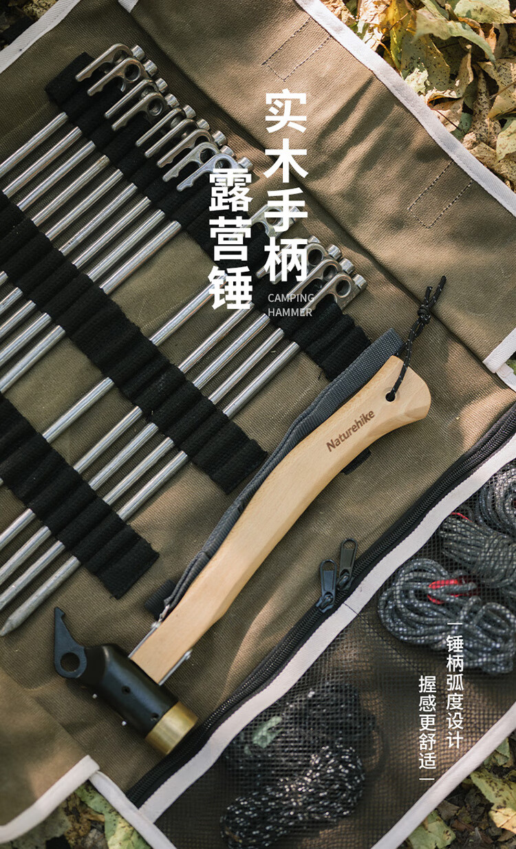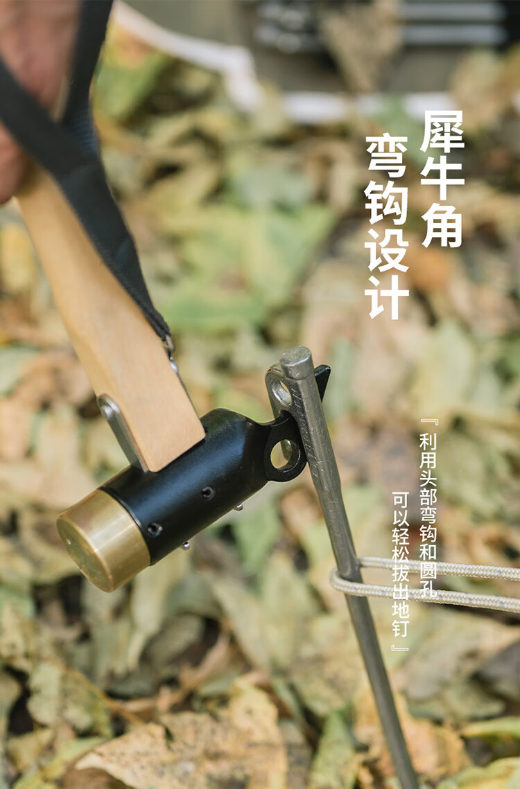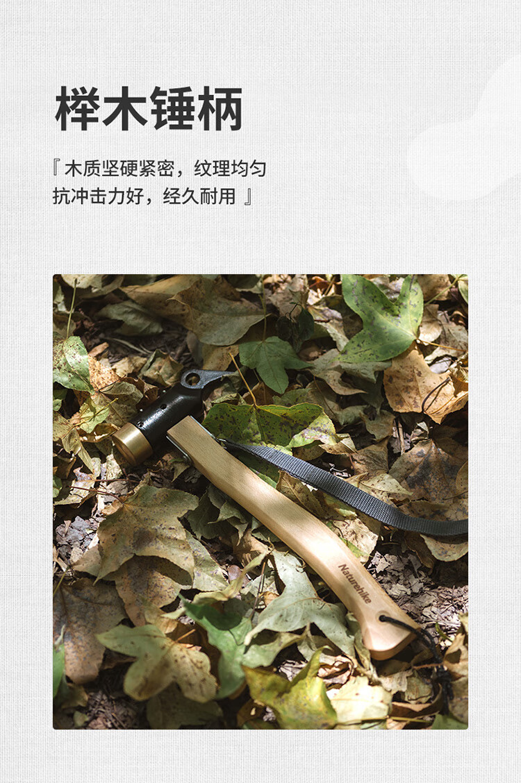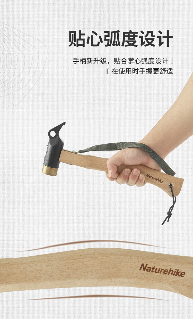 Naturehike挪客实木手柄露营铜锤子 户外野营帐篷轻便地钉锤拔钉器多功能 原木色配黑