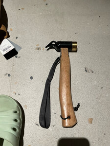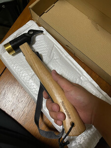 这个锤子第一次买它的锤头和并是分开的,它并不是完全一体的,不知道是不是比较耐用,它黑色部分应该是铸铁的黄色部分应该是铜,但不是纯铜,不知道怎么样呢,希望有一个好的体验吧