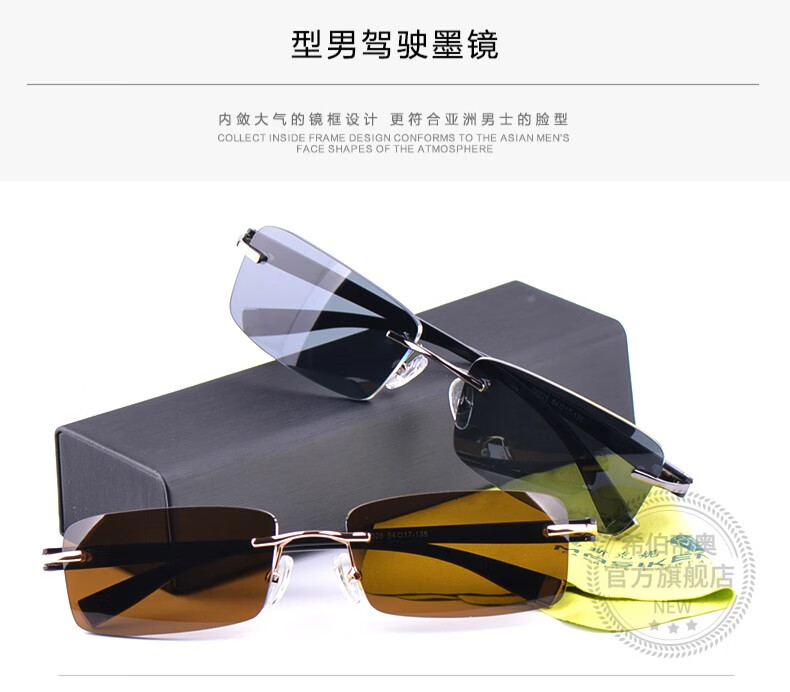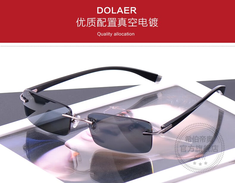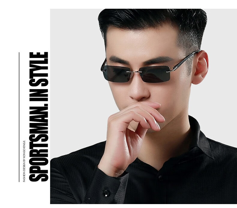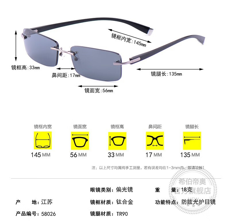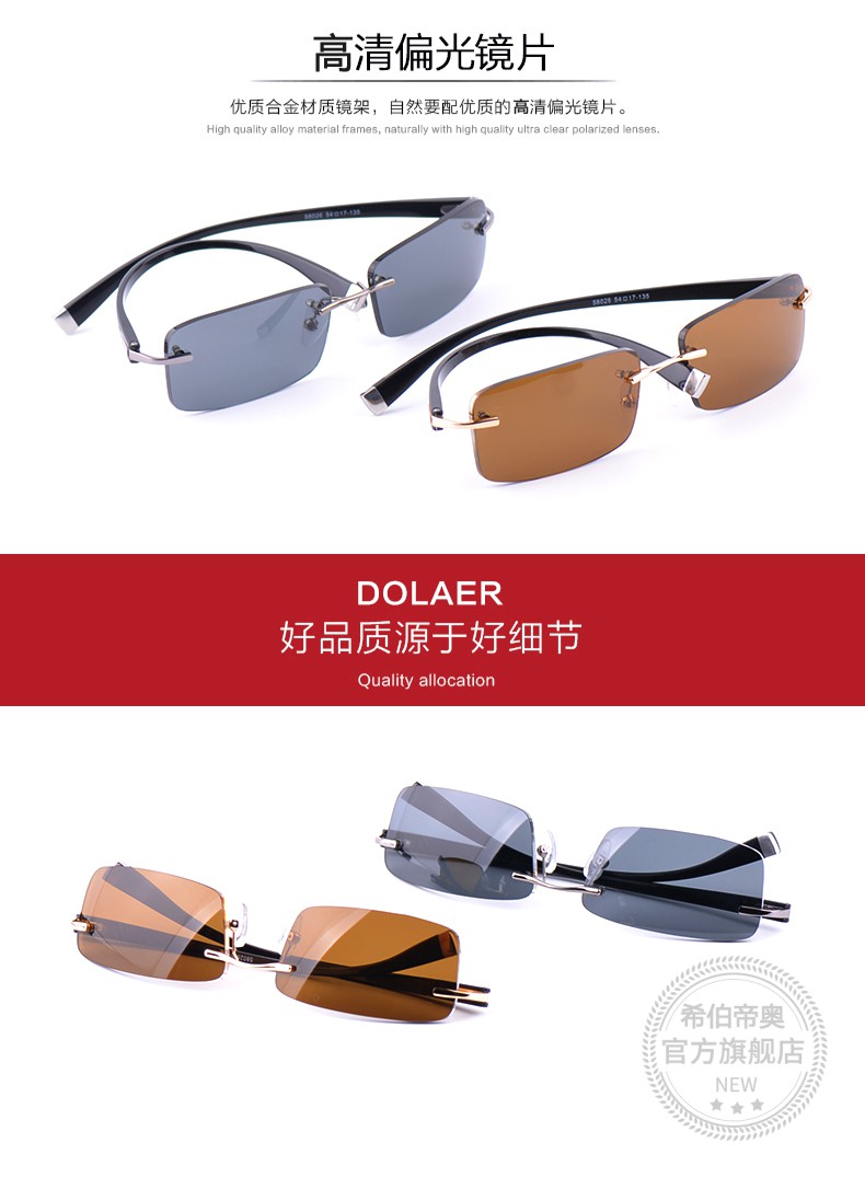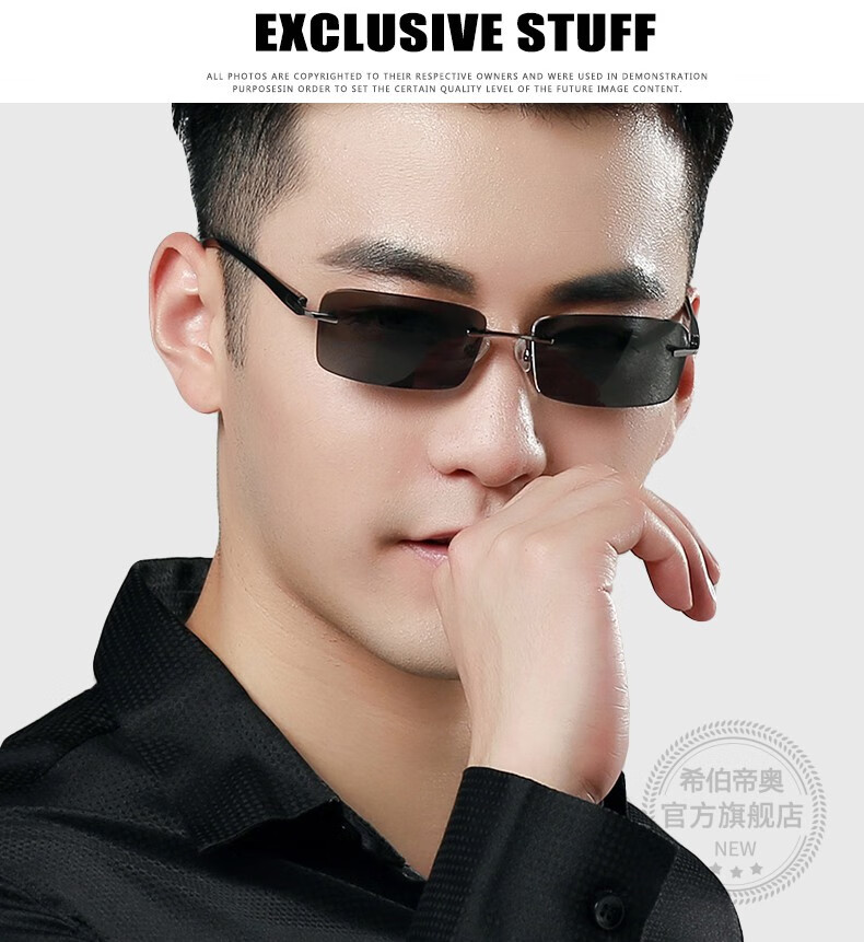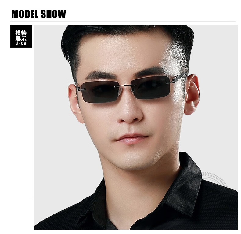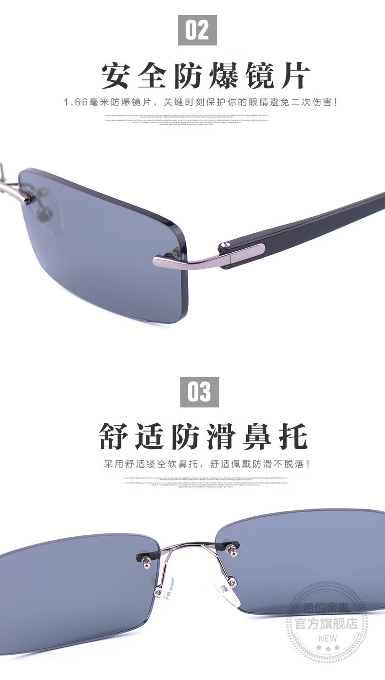 XIBODIAO品牌无框太阳眼镜男开车近视墨镜树脂偏光镜司机驾驶镜 【近视灰框偏光灰片】