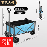 户外露营车 野营车营地车野餐车折叠车小推车手拉车拖车烧烤野炊 二代升级双刹车【蓝色】大号