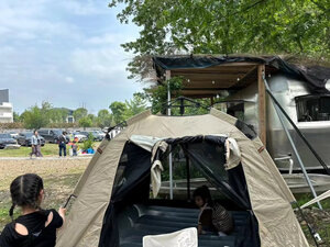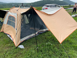 这个天幕帐篷真的是露营的好宝贝,刚好适合我们一家人用 🧑🧑🧒🧒,有帐篷又有天幕,活动空间足够大,搭起来也省时省力,感觉比单独买的要方便些。重要的是产品质量好,面料很厚实,送的桌子椅子也结实,收起来也刚好能放我推车里,完美。两个孩子玩得可开心了,很不错的露营体验🏕️