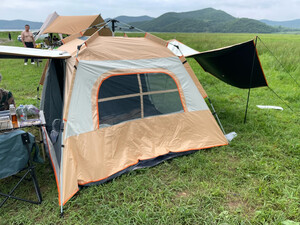 用过后真实评价。首先骨架四条腿遇偏大风会在链接处自动折弯。严重不防水,遇上一次中雨,以前的骆驼牌的啥事没有,这款根本顶不住。链接的两个小天幕就是鸡肋,安装受限制很不方便,没有拉链还拆不下来。帐篷的黑胶很薄多处透光,骨架很软,,平时哄孩子玩行,露营严重不推荐。以上是我用了5次以上的真实感觉。大家斟酌!对了通风很好!附上全方位照片。