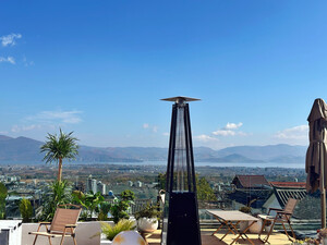 性价比很高,放在露台拍照很好看。点燃气的,所以取暖效果不错