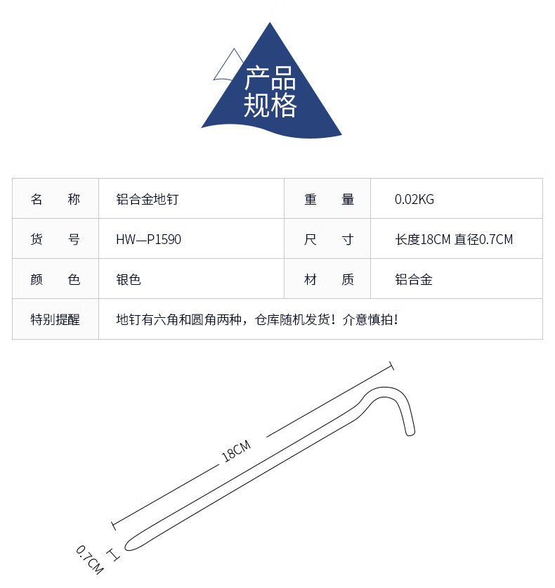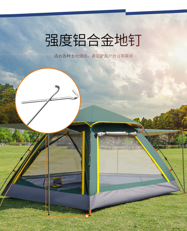 包装完整送货速度快,铝合金地钉不错,很轻,跟帐篷带的地钉一样,四级以下风没问题,就是有风时候用,平时都是直接搭帐篷,满意!价格实惠!