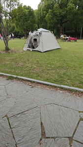 帐篷比之前买的大多了。适合五六个人一起在帐篷里打牌或者打桌游。防晒效果也很棒 收纳也很方便 趁着国企期间来露营 很棒哦 给力