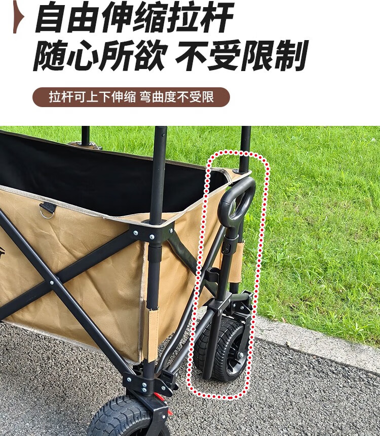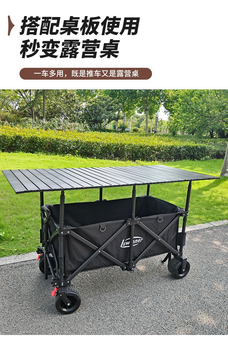 维诺亚【加长1.2米摆摊车】摆摊露营推车营地车户外折叠拖车大推车翻斗 1.2米拖斗车咖黑色+95黑色
