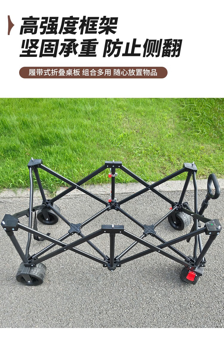 户外摆摊小推车 可折叠夜市集市地摊小车户外露营车拉货多功能小 升级坦克巨轮带刹车(卡其)