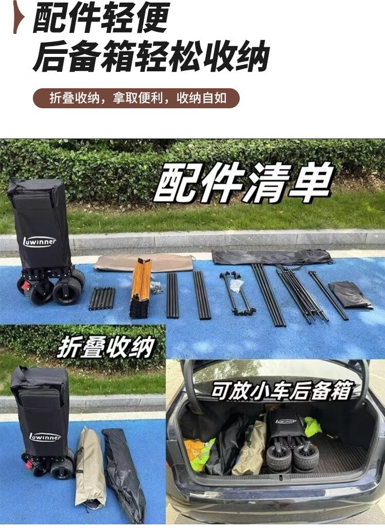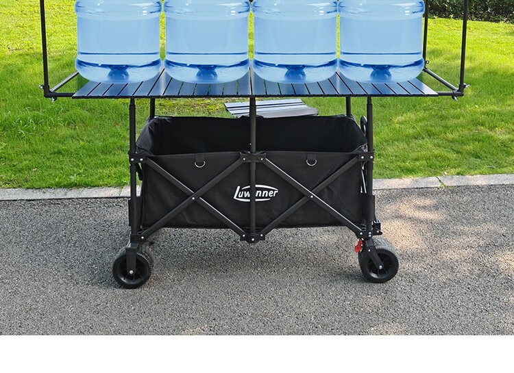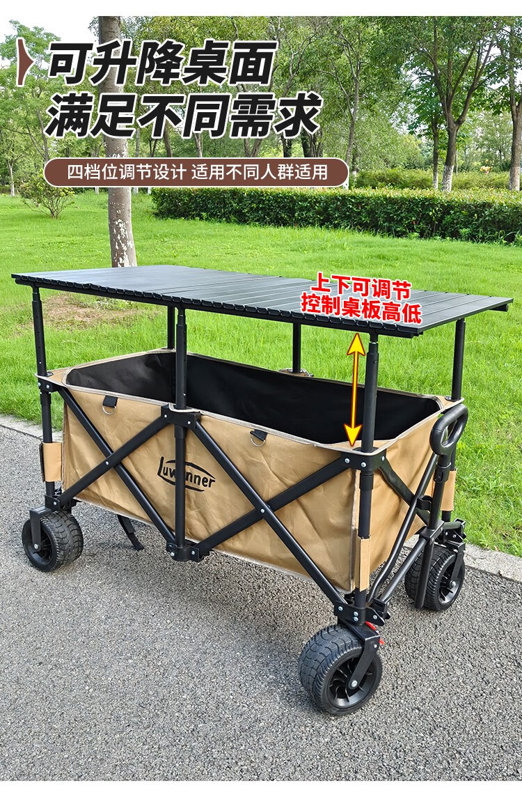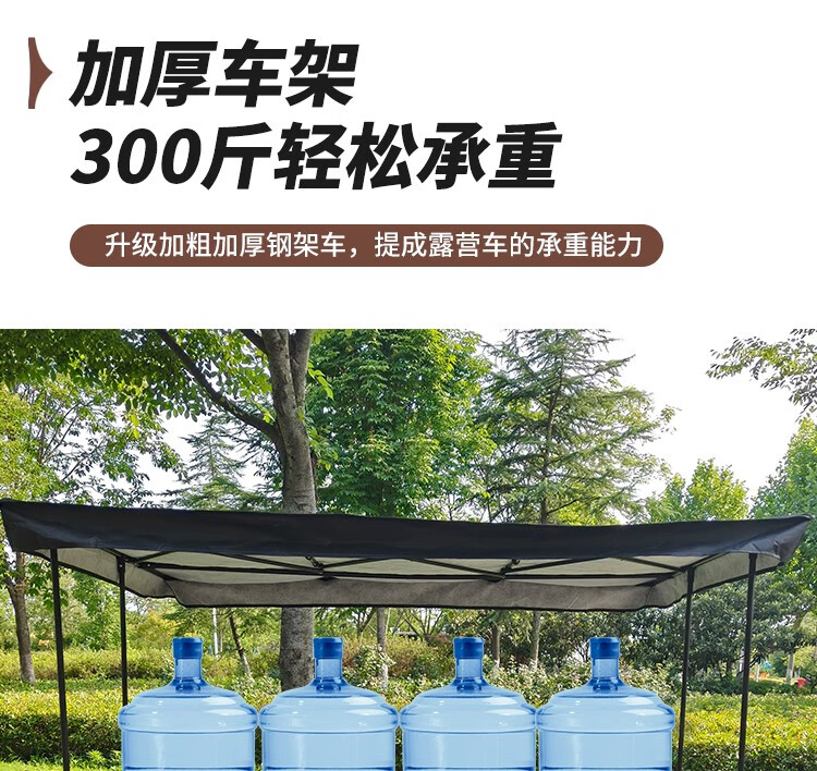 移动夜市摆摊小推车升降桌带遮阳棚露营车地摊户外营地拖车可折叠 10寸坦克轮(黑色)+120黑色桌子