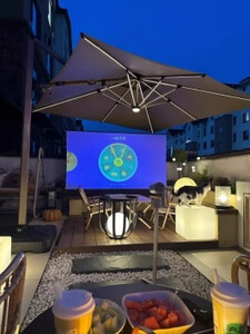 画质很好,很清晰,效果相当的不错,亮度真的很高,配上幕布,简直就是一绝,室外看也毫无压力,使用起来也很流畅,开机没有任何广告,非常喜欢这个,不像电视机,开机就是乱七八糟的广告看的人心烦,手机投屏也很方便,操作很简单,家里老人都会自己使用了,打算再买一台,放在卧室使用,这样晚上就可以实现躺在床上看电视啦