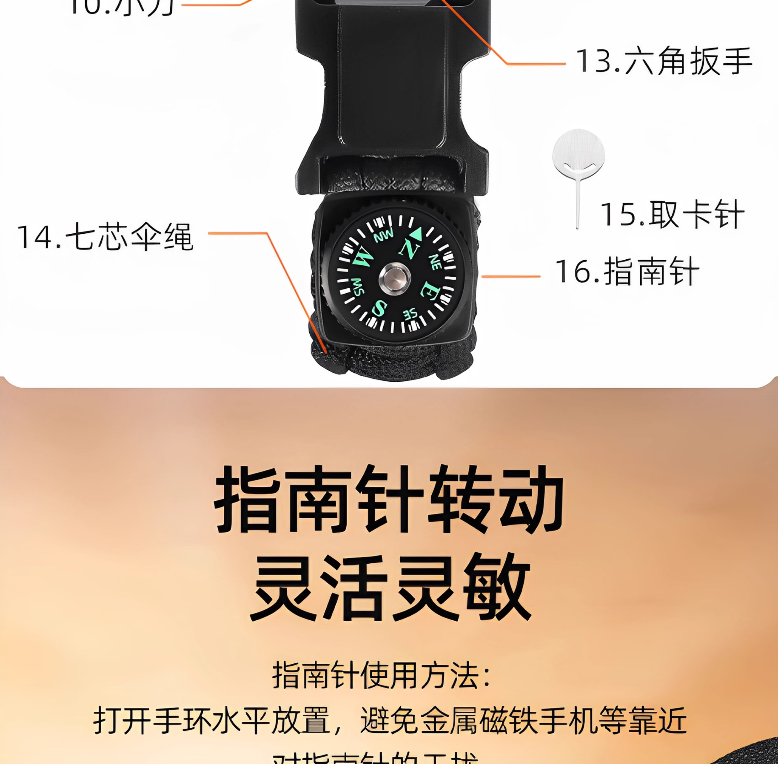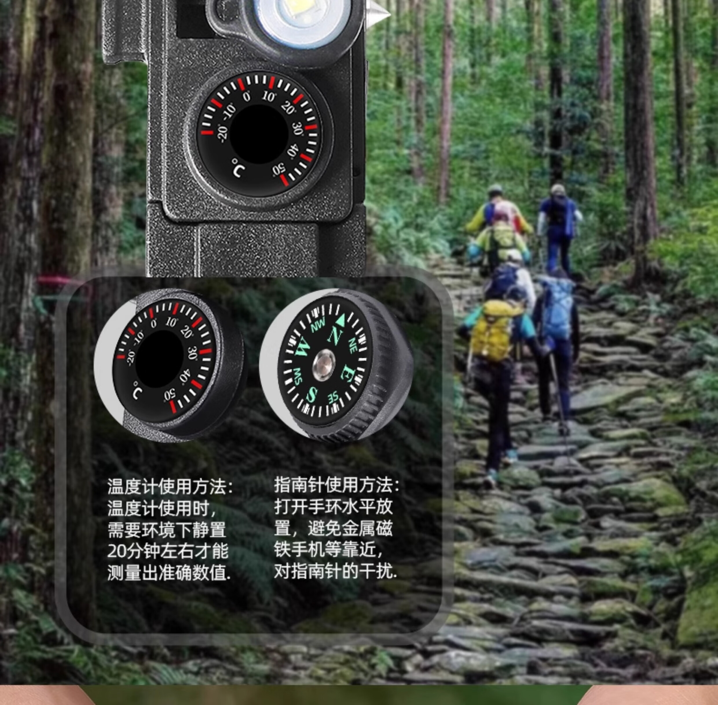 东西已收到,使用过一次,颜值还可以,指北针等功能也还行,就是温度计感觉不太好使,有待改进